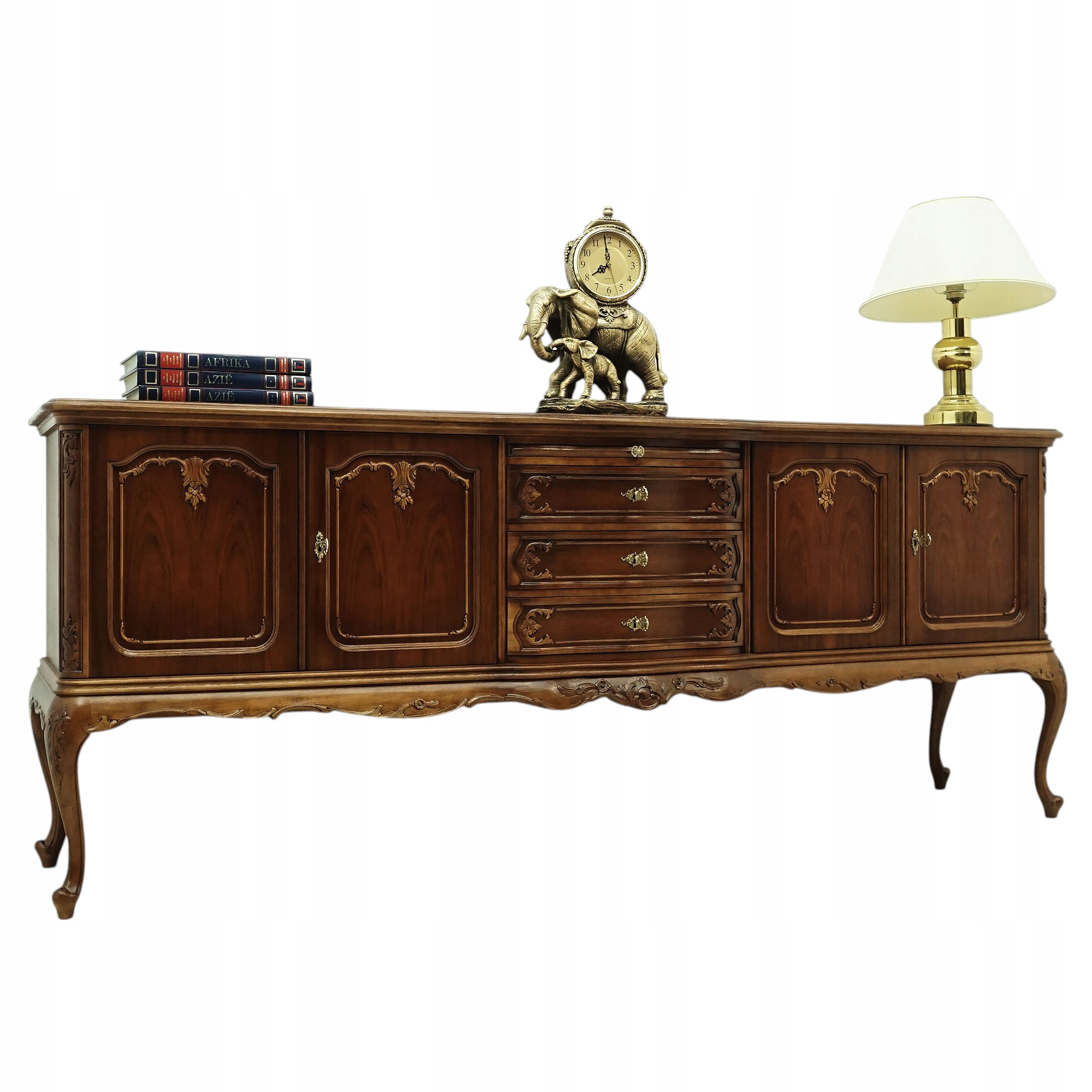 Введіть трохи розкоші та класу всередині завдяки унікальному комоді в стилі Луї. Цей прекрасно вирізаний предмет меблів вражає свою майстерність, тонкі прикраси та гармонійна лінія, яка стосується класичних тенденцій французького дизайну. 4 Елегантні ручки, декоративні ящики та зігнуті ноги додають легкість та унікальний шарм.