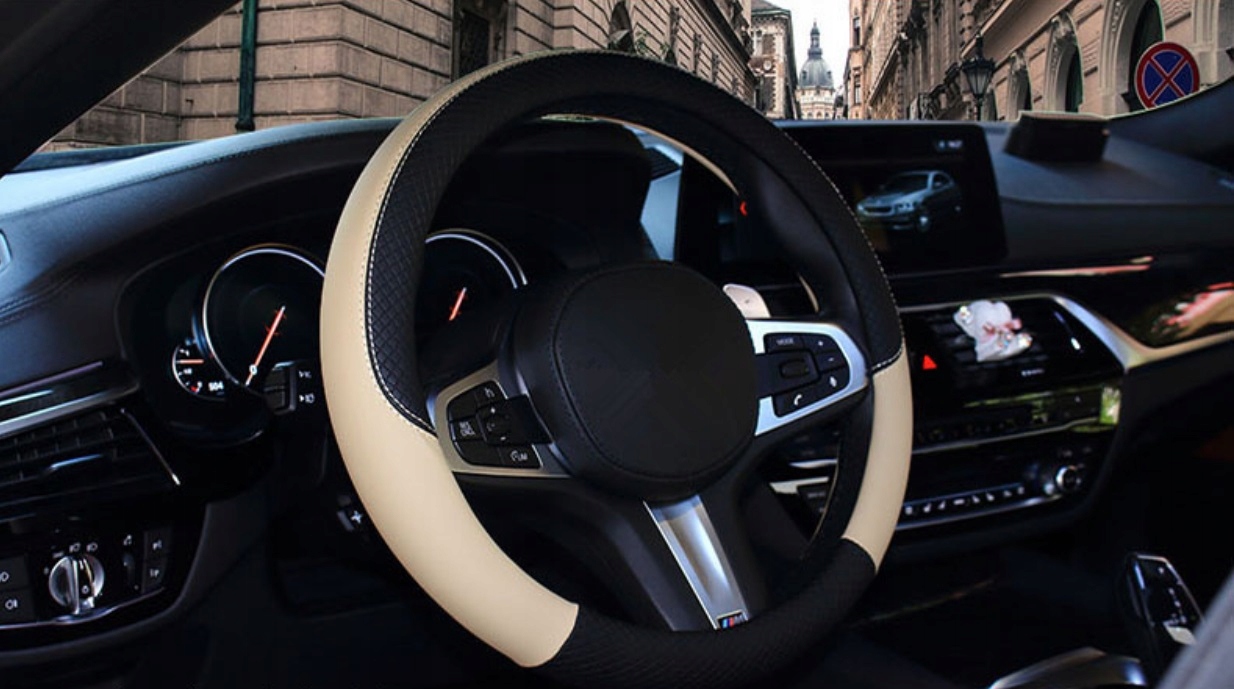 ANTYPOŚLIZGOWY pokrowiec na KIEROWNICĘ BEŻOWY