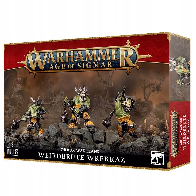 Цей багатокомпонентний пластиковий набір складається з трьох Weirdbrute Wrekkaz – орруків берсерка, наповнених магічним божевіллям. Цей набір може альтернативно створити трьох Brute Ragerz, озброєних різноманітною важкою дворучною зброєю. Цей набір складається з 50 пластикових компонентів і включає 3 круглі основи Citadel 40 мм. Ці мініатюри постачаються незафарбованими та потребують складання – ми рекомендуємо використовувати клей Citadel Plastic Glue і фарби Citadel Color.