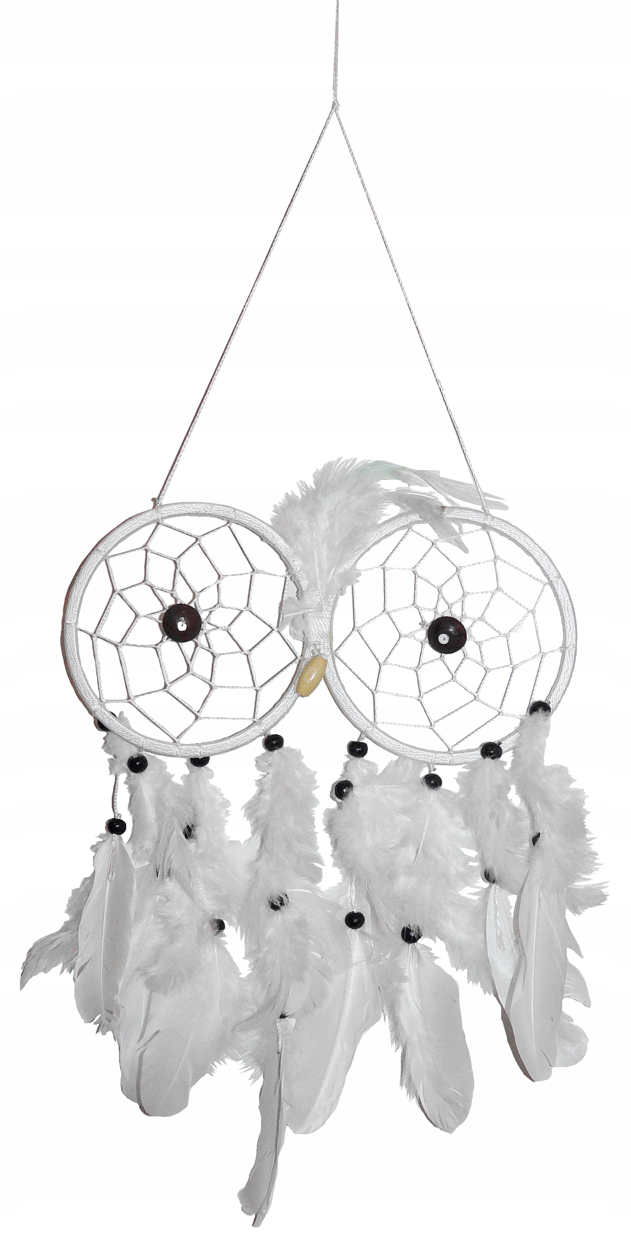 ŁAPACZ SNÓW Z DWOMA OKRĘGAMI 56 cm INDONEZJA BIAŁY
