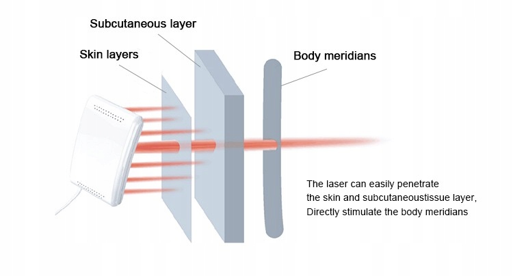 Протягом цього часу, фотони, випромінювані лазером, позбавлені теплової енергії, проникають крізь шари шкіри (епідерміс, дерму та підшкірну або жирову клітковину під шкірою). Це світло має здатність проникати в тіло на глибину від 2 до 5 см, з потужністю 90 мВт і довжиною хвилі 830 нм.