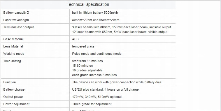 має 15 лазерних діодів: 3 x 808 нм + 12 x 650 нм