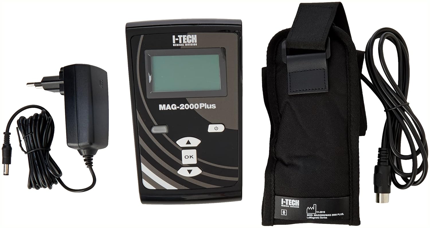 МАГНІТОТЕРАПІЯ MAG 2000 PLUS з 2-ма каналами, 400 Гаус, апарат для домашньої та професійної магнітотерапії, оснащений 2-ма каналами, потужністю 200 Гаус кожен, для лікування різних ділянок тіла за допомогою терапевтичної гумової стрічки з 3 електромагнітами; 10 ПАМ'ЯТЬ КОРИСТУВАЧА