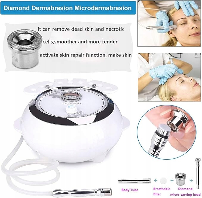 ❤【Знімна та змінна алмазна головка】 з 9 алмазними головками з різними функціями. Знімна ручка дозволяє зручно розміщувати алмазні головки та палички. Регульована інтенсивність всмоктування дозволяє адаптуватися до різних видів обробки поверхні. Підходить для обличчя, чола, грудей, носа, шиї та області навколо очей. Природний шлях до здоровішої та молодшої шкіри.