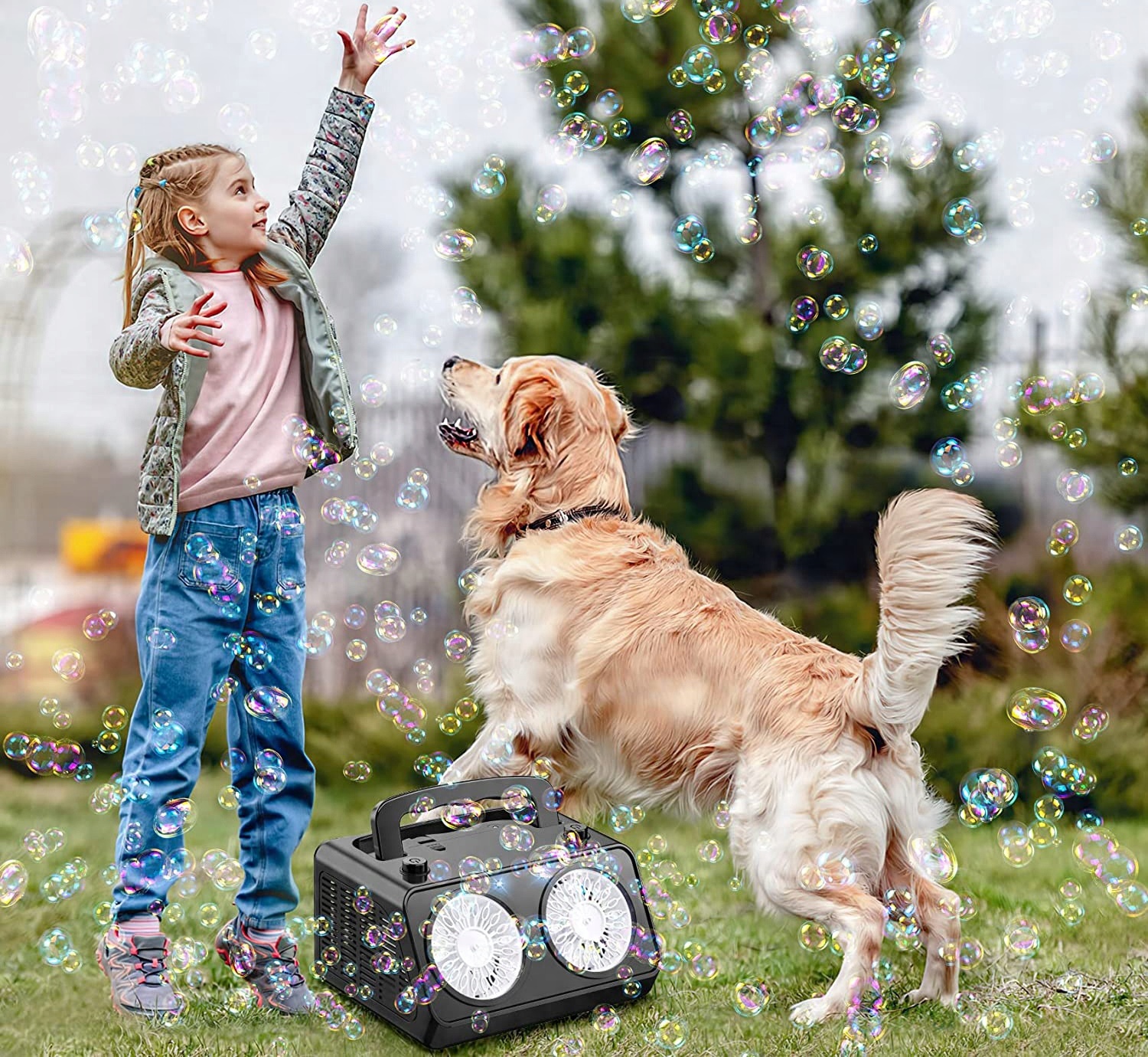 ✨ДУЖЕ ЕФЕКТИВНИЙ✨ Машина для мильних бульбашок — ідеальна ідея, щоб урізноманітнити будь-яку вечірку. Після додавання спеціальної рідини або мильної води він утворює велику кількість бульбашок і розсіює їх за допомогою тихого вентилятора.