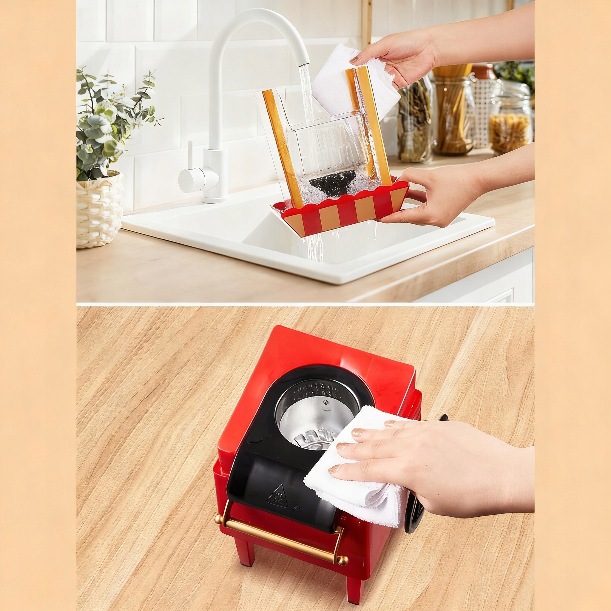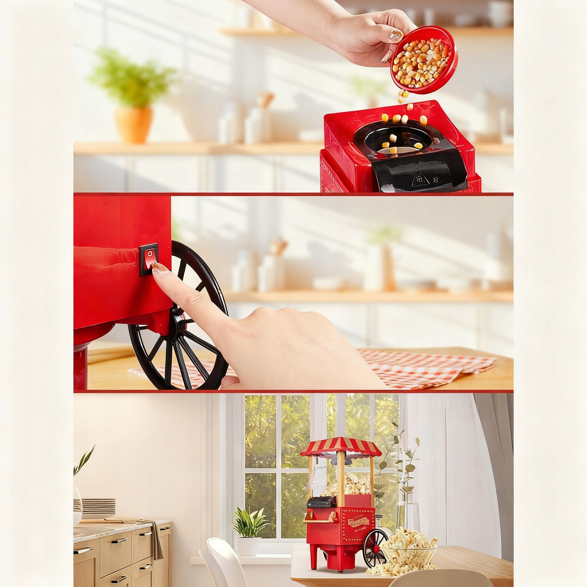 ⚡Унікальний дизайн: ретро-дизайн машини додає шарму вашій кухні та робить приготування попкорну привабливим елементом дизайну інтер'єру.