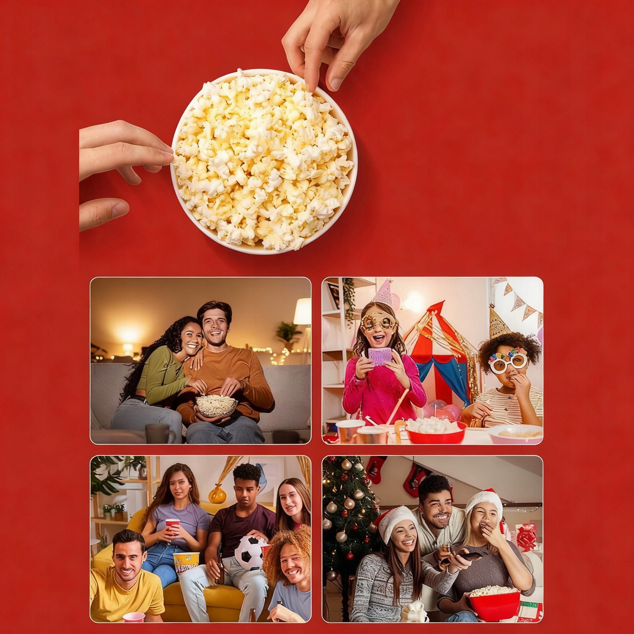 О, як чудово! Ця машина для приготування попкорну ідеально підходить для затишних кіновечорів, як низькокалорійний, здоровий перекус у гості до друзів або для того, щоб насолодитися смачними закусками з дітьми! Це також чудовий подарунок на День подяки, Різдво, Новий рік, новосілля та багато інших подій!