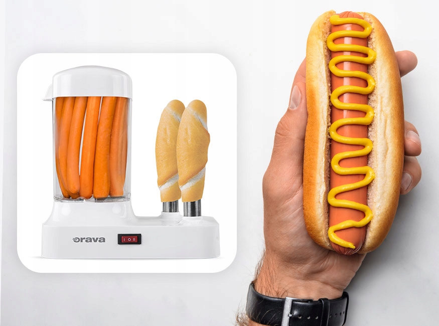 Хот-доги Orava HM-03 в контейнері з антипригарною поверхнею дозволяють приготувати до 6 хот-догів одночасно. Оскільки сосиски традиційно варять не у воді, а готують на пару, вони смачніші і приємніше кусатися. 2 шипи з нержавіючої сталі використовуються для нагрівання тіста та створення отвору, в який вставляється хрустка соковита ковбаска. Завдяки цьому Рожок прогріється по всій довжині і чудово пахне, ніби ви його щойно спекли.