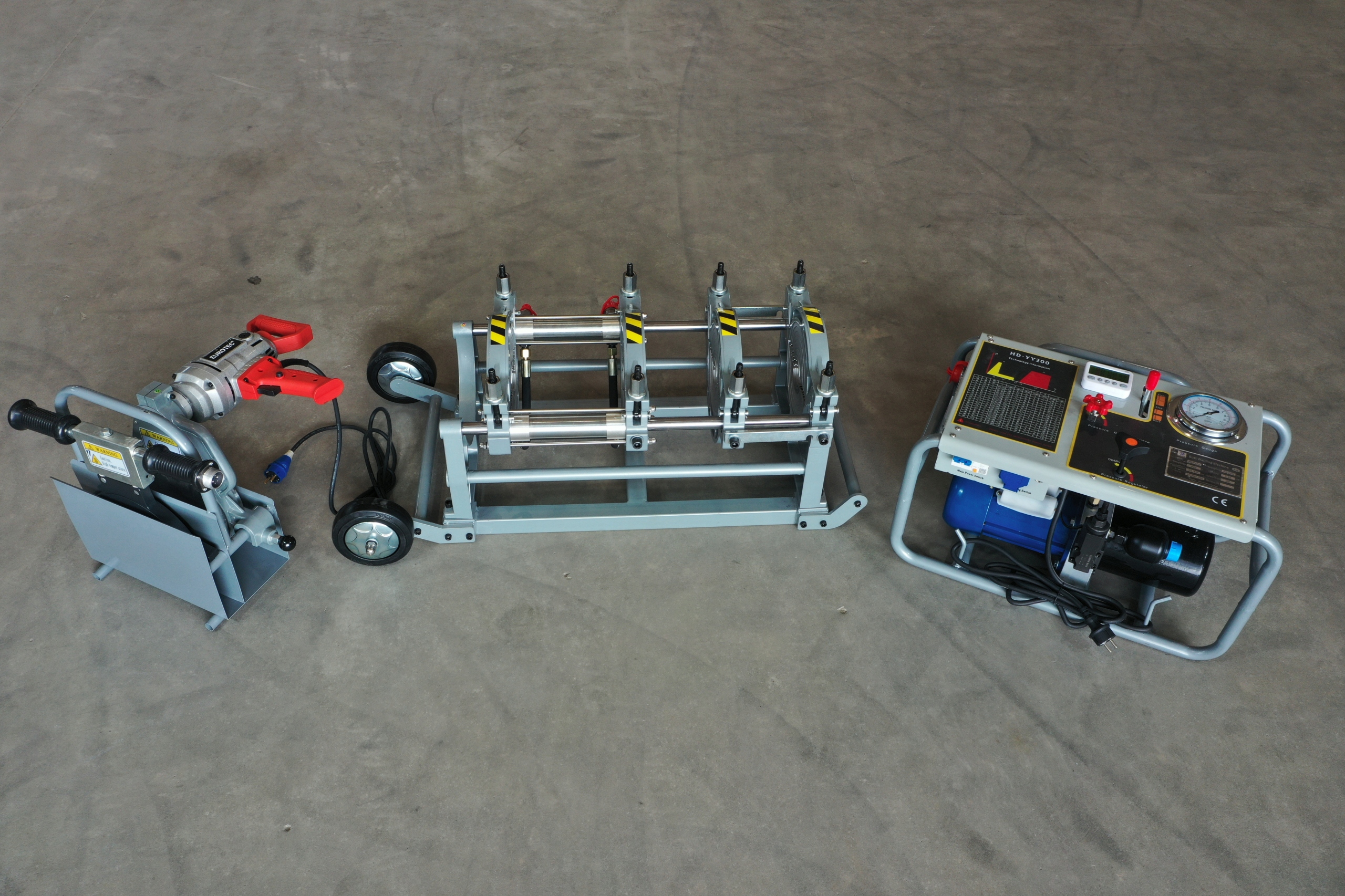 - зварювальний апарат, оснащений комплектом перехідних кілець, що дозволяє зварювати труби діаметрів: fi200 fi180 fi160 fi140 fi125 fi110 fi90 fi75 fi63 ,fi50