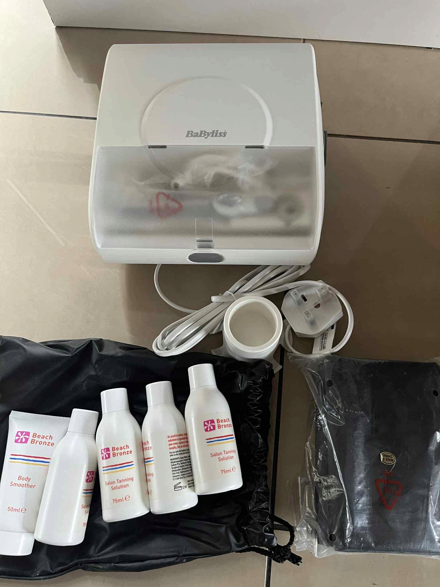 Набір для автозасмаги в салоні Babyliss Beach Bronze. Містить професійний спрей-компресор, краскопульт і аксесуари для отримання рівномірної засмаги. Невикористаний продукт забезпечує природний і стійкий ефект засмаги в комфорті вашого дому.