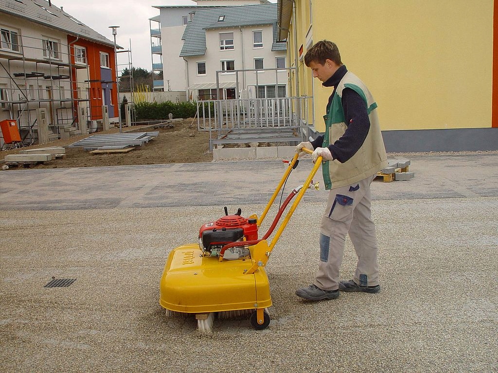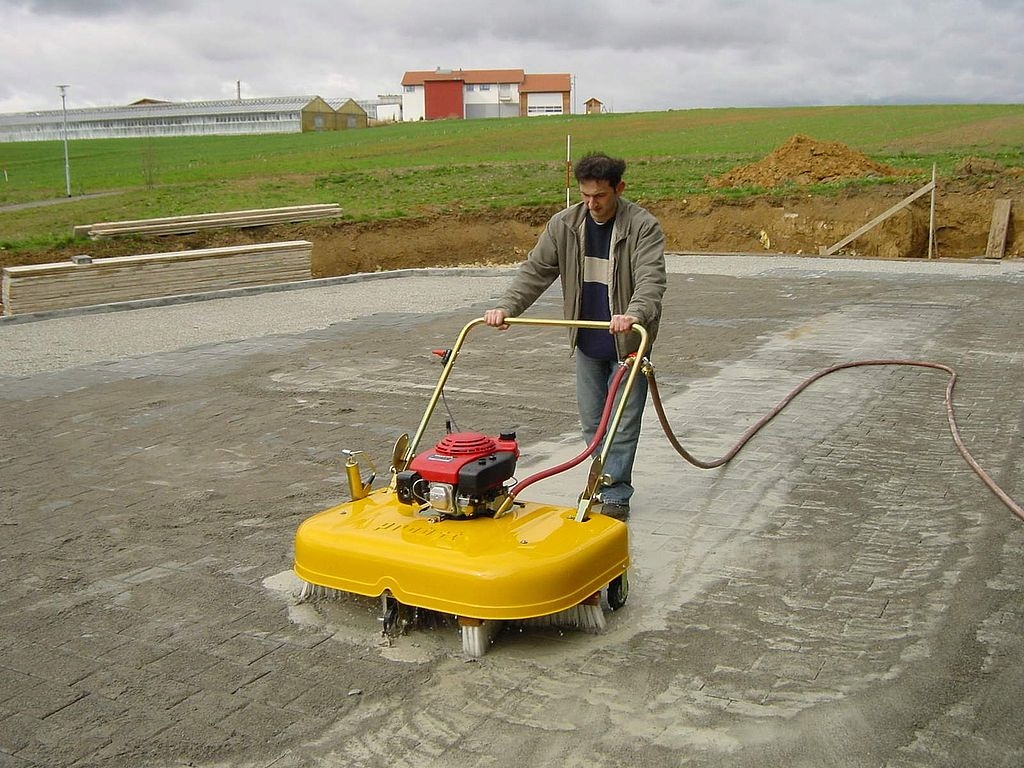 Пристрій Probst ідеально підходить для заповнення швів між укладеною бруківкою. Блок можна натирати як сухим, так і вологим завдяки вбудованому розпилювачу води. Він має спеціально розроблені щітки, які можуть розвантажити працівника, а необхідна сила штовхання зменшується до 80% завдяки передньому приводу. Перевагою є бензиновий двигун, який призначений не тільки для приводу щіток, а й для приводу всієї машини, завдяки чому він сам тягне пристрій без особливої сили, тому його не потрібно штовхати з постійно високими витратами енергії . Єдине, що залишається працівнику, це без особливих зусиль впоратися. Плавне регулювання висоти щітки. Ручка машини складається і не створює проблем під час транспортування. Розмір виробу 800 мм в довжину, 1170 мм в ширину і 635 мм у висоту. Кран інтегровано з ручкою, що дозволяє точно подавати воду.