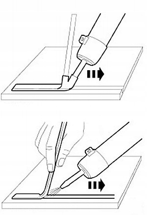 - Зварювання з насадкою А - додатковий отвір в насадці призначений для вставки пластику