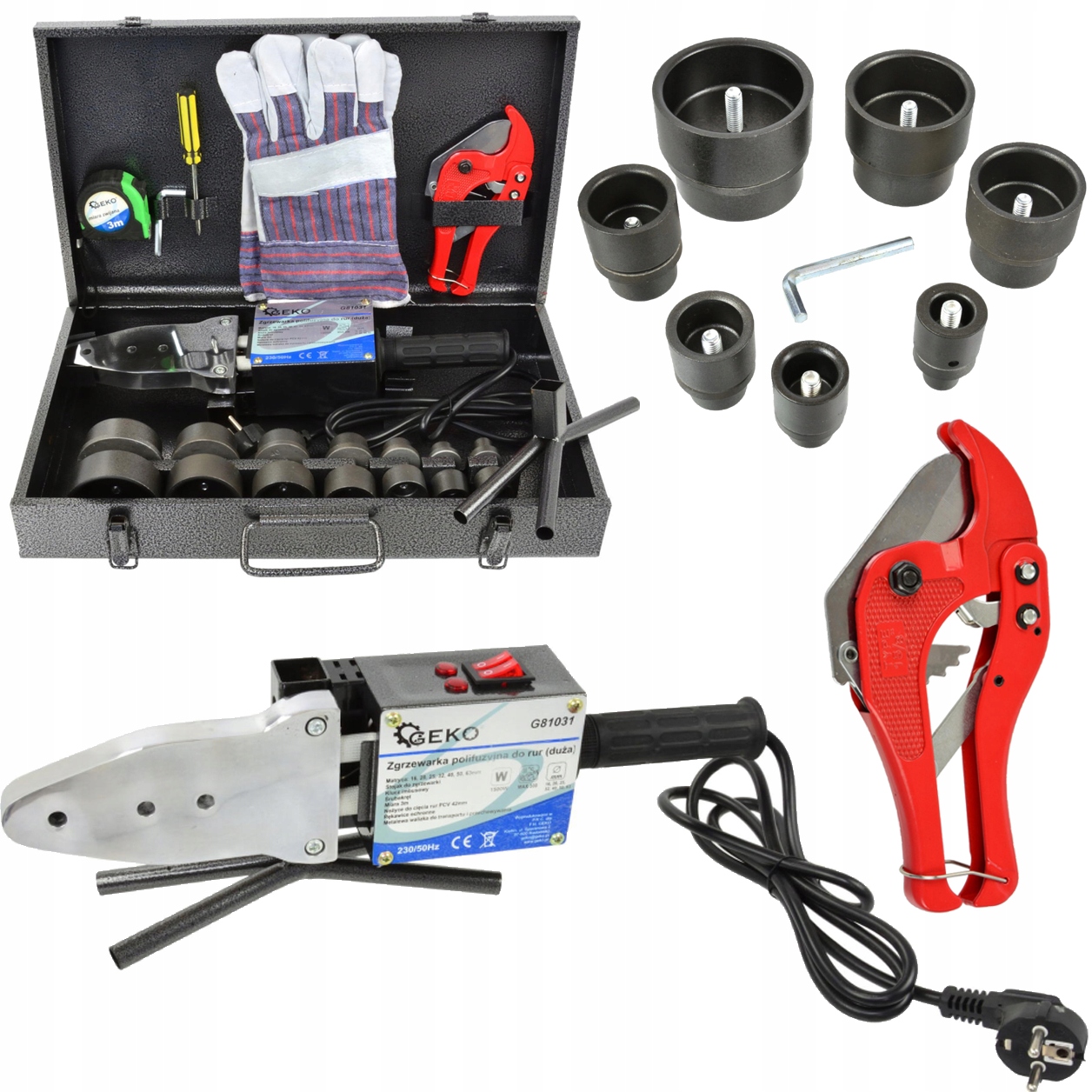 ТРУБОЗВАРЮВАЛЬНИЙ АПАРАТ 1500 Вт 7 МАТРИЦЬ 16-63 мм
