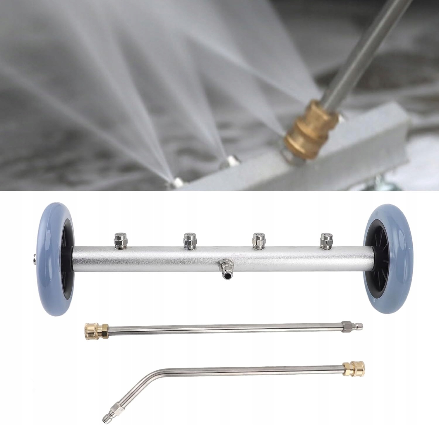 ✅Поверхня очищувача для алюмінію оснащена насадками з нержавіючої сталі та 2 роликами. Струмінь води з чотирьох форсунок може ефективно очищати бруд, а два ролики можуть обертатися на 360 градусів, що робить пилосос простим у використанні. Він може очистити кожен куточок і щілину, тож вам не доведеться турбуватися про прибирання.