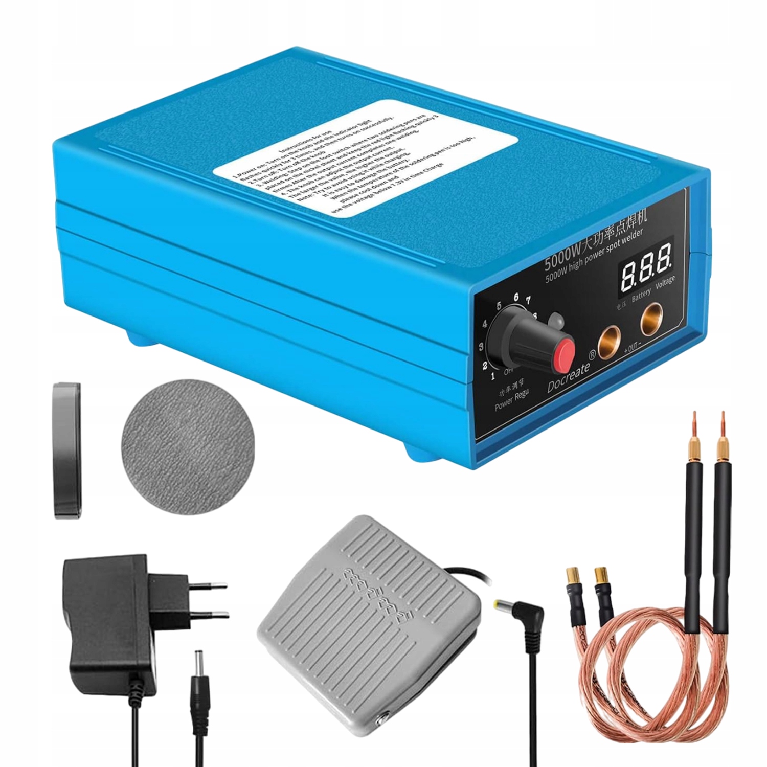 - ⚡ Потужність: цей інструмент для точкового зварювання має потужність до 5000 Вт, що може забезпечити велику потужність і підвищити ефективність роботи.