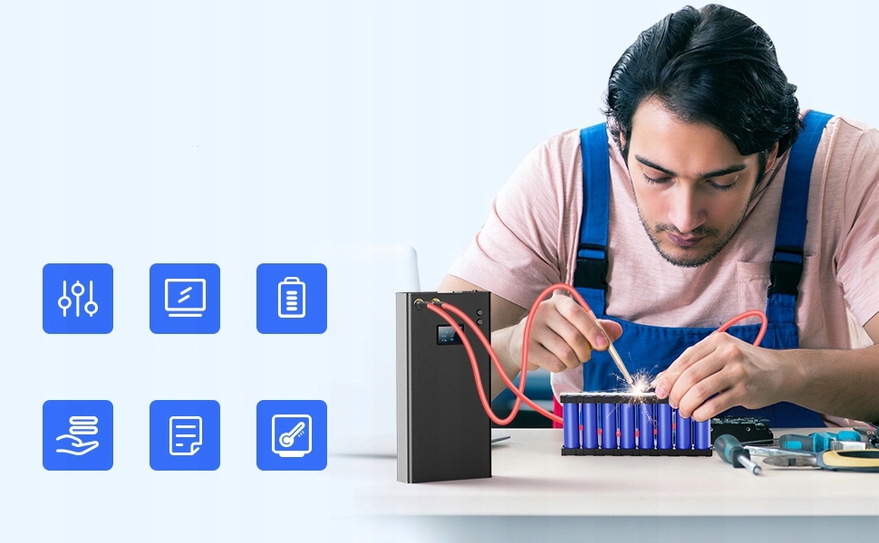 - Цей мініапарат для точкового зварювання має вбудований акумулятор на 7500 мАг, який можна повністю зарядити за 3 години.