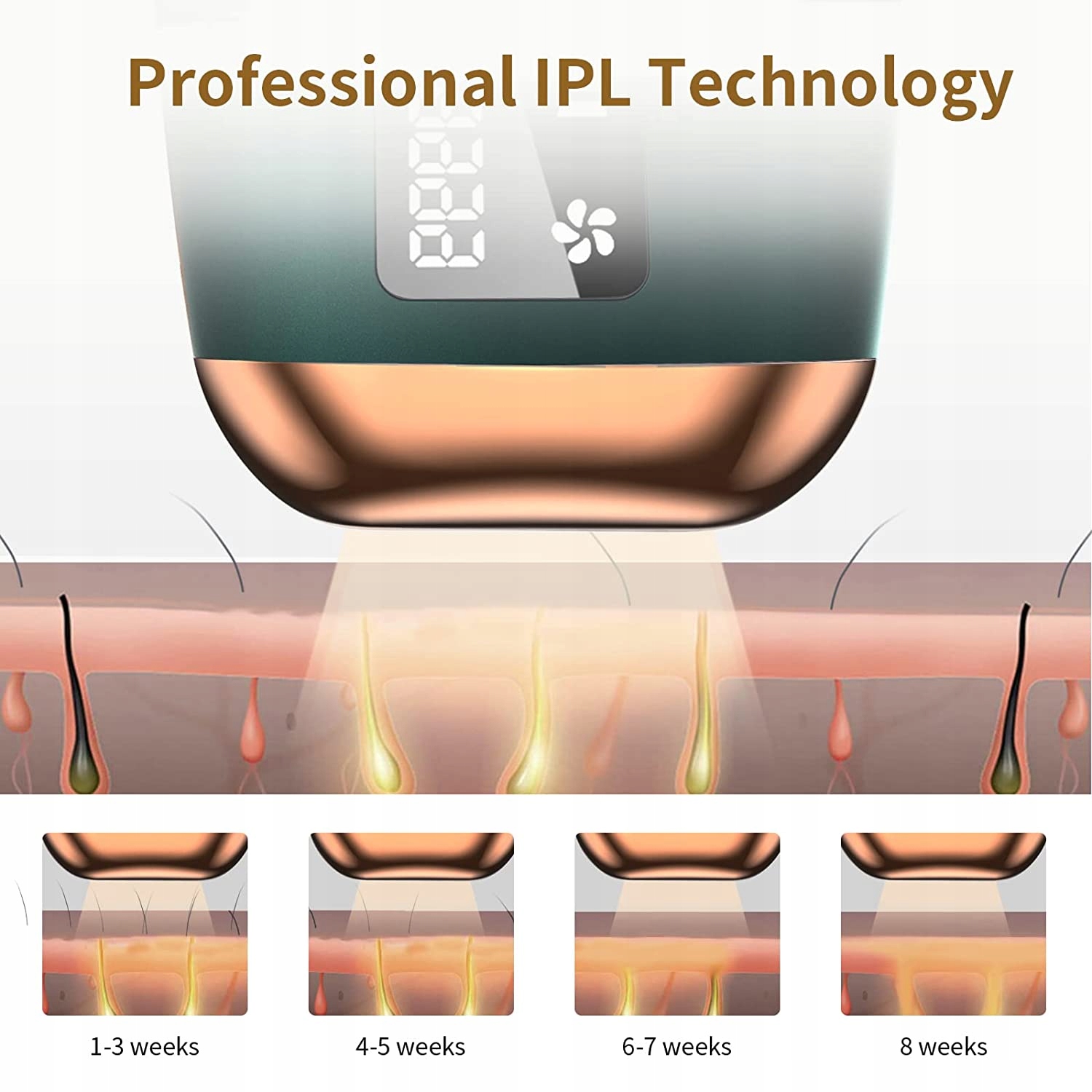 - Постійне безболісне видалення волосся IPL: наші професійні пристрої для видалення волосся IPL використовують передову технологію IPL, щоб розірвати цикл регенерації волосся. Світло, яке він випромінює, м’яке та безболісне, не завдає шкоди шкірі. Після 8-12 тижнів використання нашої епіляції IPL швидкість росту волосся повільно зменшується більш ніж на 90%. Через 13 тижнів ви помітите незначний ріст волосся або його відсутність.