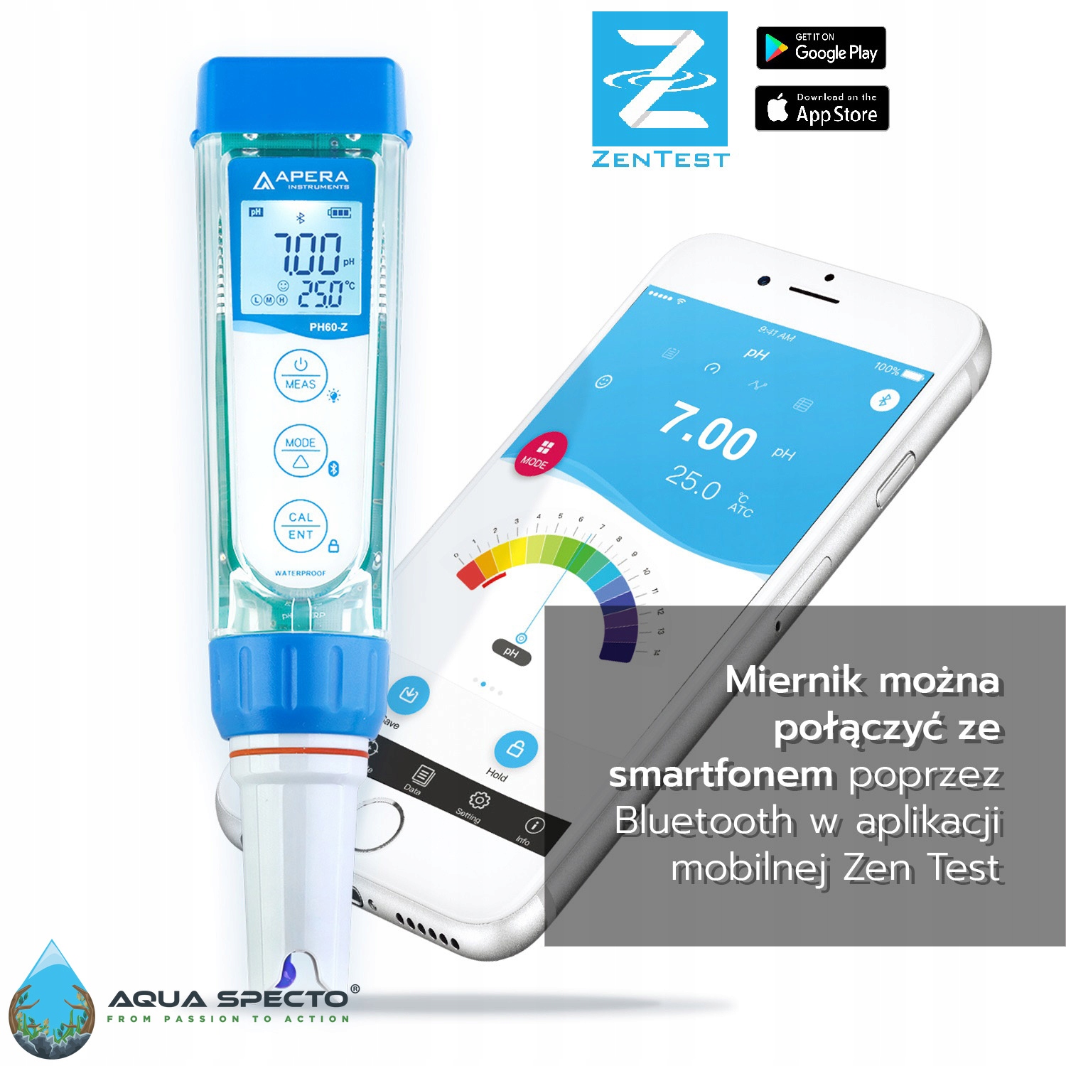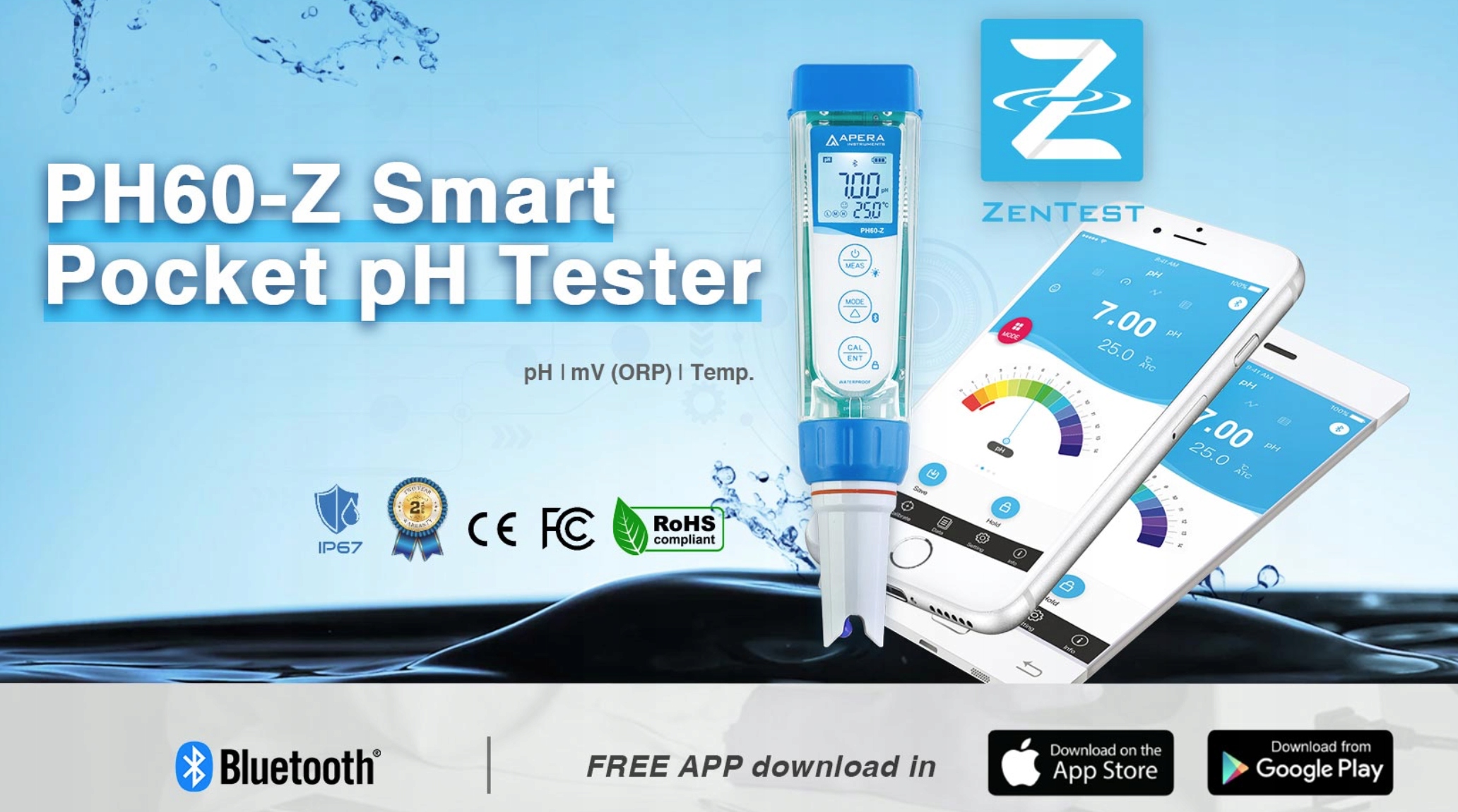 Просто підключіть тестер до смартфона за допомогою Bluetooth у програмі Zen Test Mobile (можливість безкоштовного завантаження з Apple та Google Play App Store). Після кількох кліків ви зможете провести професійні тести PH.