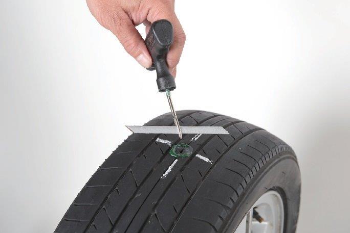 Використовується для підготовки отвору в шині до ремонту за допомогою шпильки або мотузки. За допомогою обертального руху пошкодження вирівнюються і зачищаються. Потім, використовуючи той самий інструмент, ви можете вставити клей в отвір.