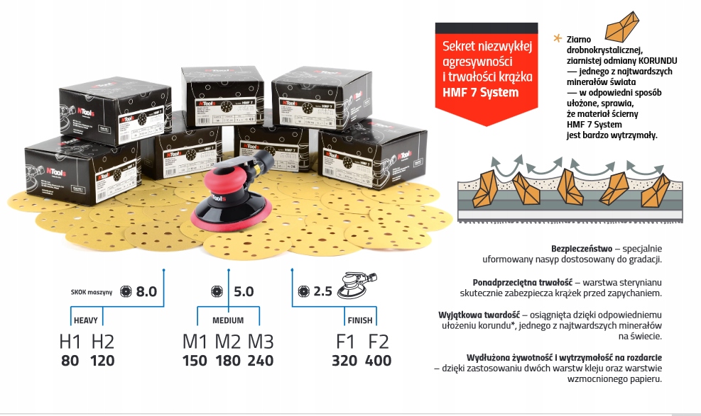 Система HMF 7 — це перша комплексна система подрібнення, створена з тих пір основи з метою оптимізації швидкості роботи в майстернях лакування та якість полірованої поверхнізі збереженням суворості безпека технологічного процесу.