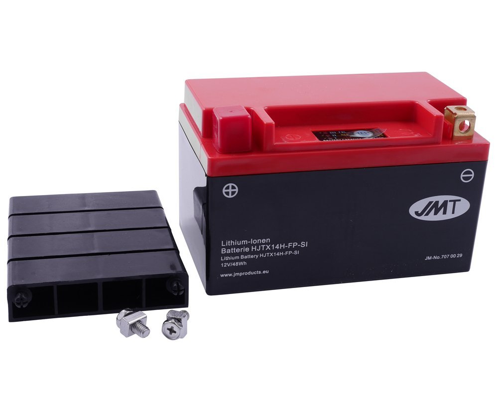 Літій-іонні батареї JMT завдяки своїй конструкції покривають майже 90% попиту на ринку мотоциклів. Їх головною перевагою є дуже мала вага. Звідси їхнє широке використання в мотоспорті завдяки відносно дешевому, порівняно з іншими процедурами, зменшенню ваги мотоцикла.