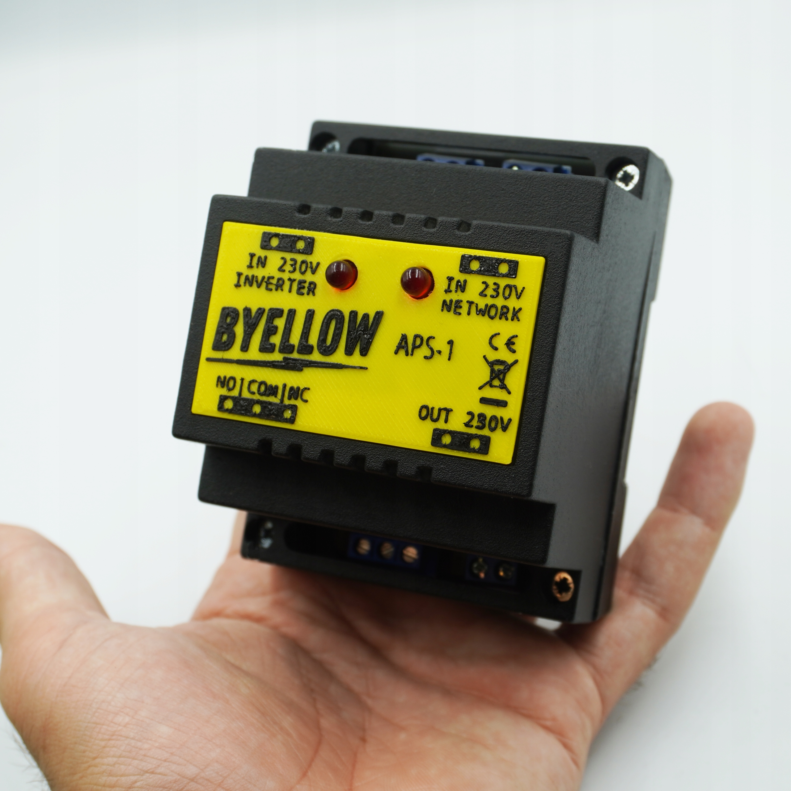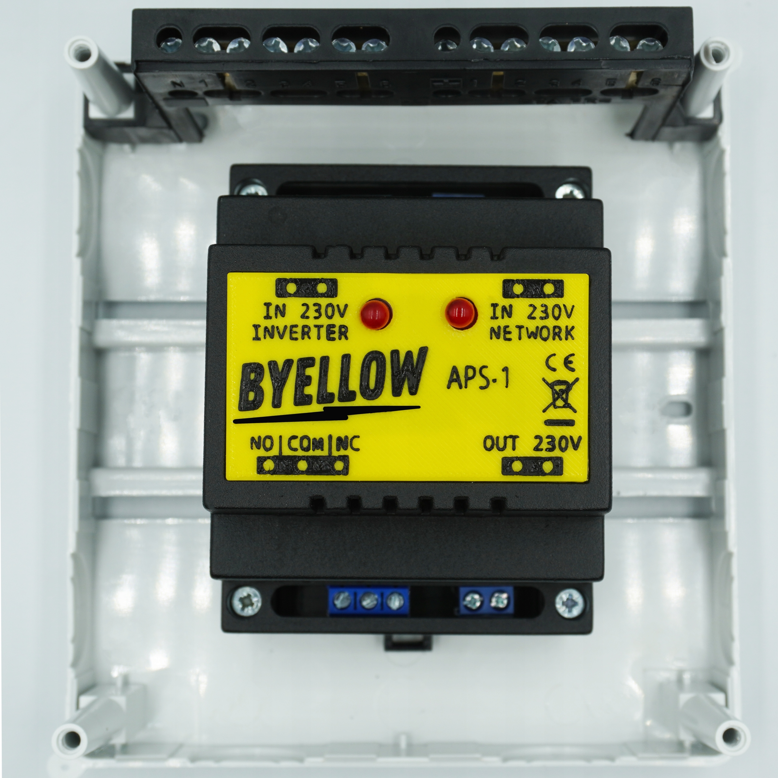 BYellow APS-1 (автоматичний вимикач живлення) — незамінний пристрій для тих, хто використовує альтернативні джерела енергії, такі як сонячні батареї, вітрові електростанції тощо.
