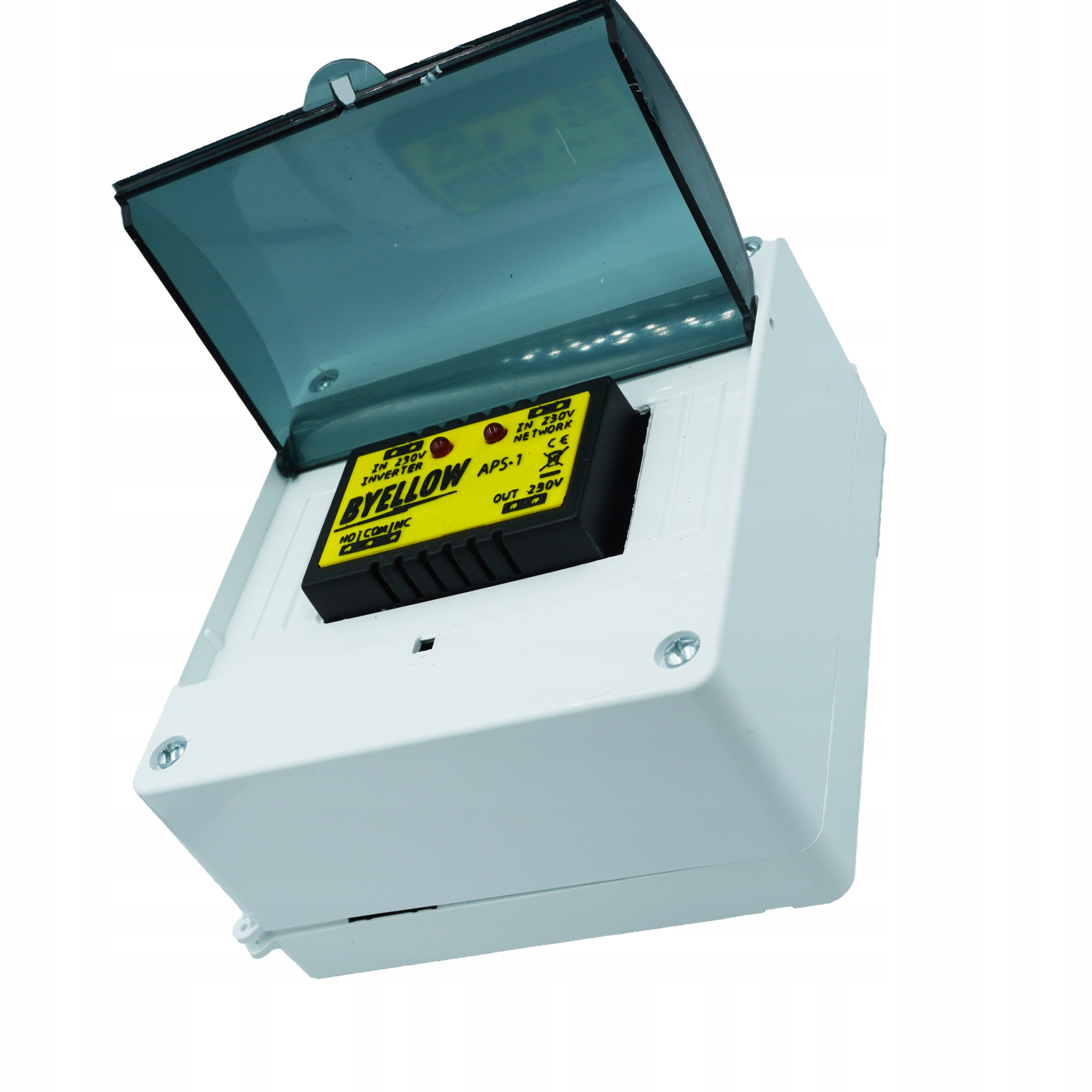 BYELLOW APS-1 автоматично вмикає живлення від мережі у разі відключення електроенергії від перетворювача, підключеного до акумуляторів.