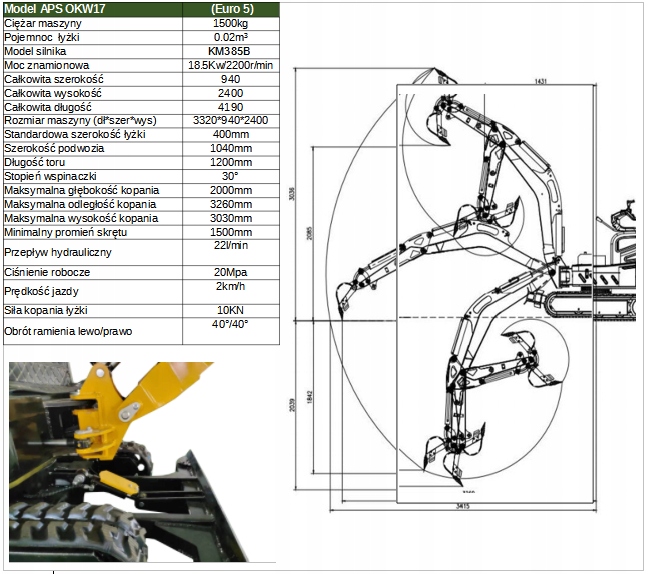 Basic technical data of the APS OKW17:  h1>  -   Engine:  laidong KM385B, Diesel Euro 5