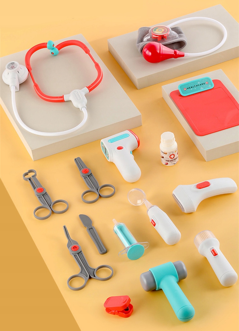 Великий набіраксесуарів, які надають багато можливостей для гри. Ваша дитина буде ними лікувати всіх домочадців, ведмедиків і ляльок, а заодно познайомиться з роботою лікаря і не боятиметься оглядів.