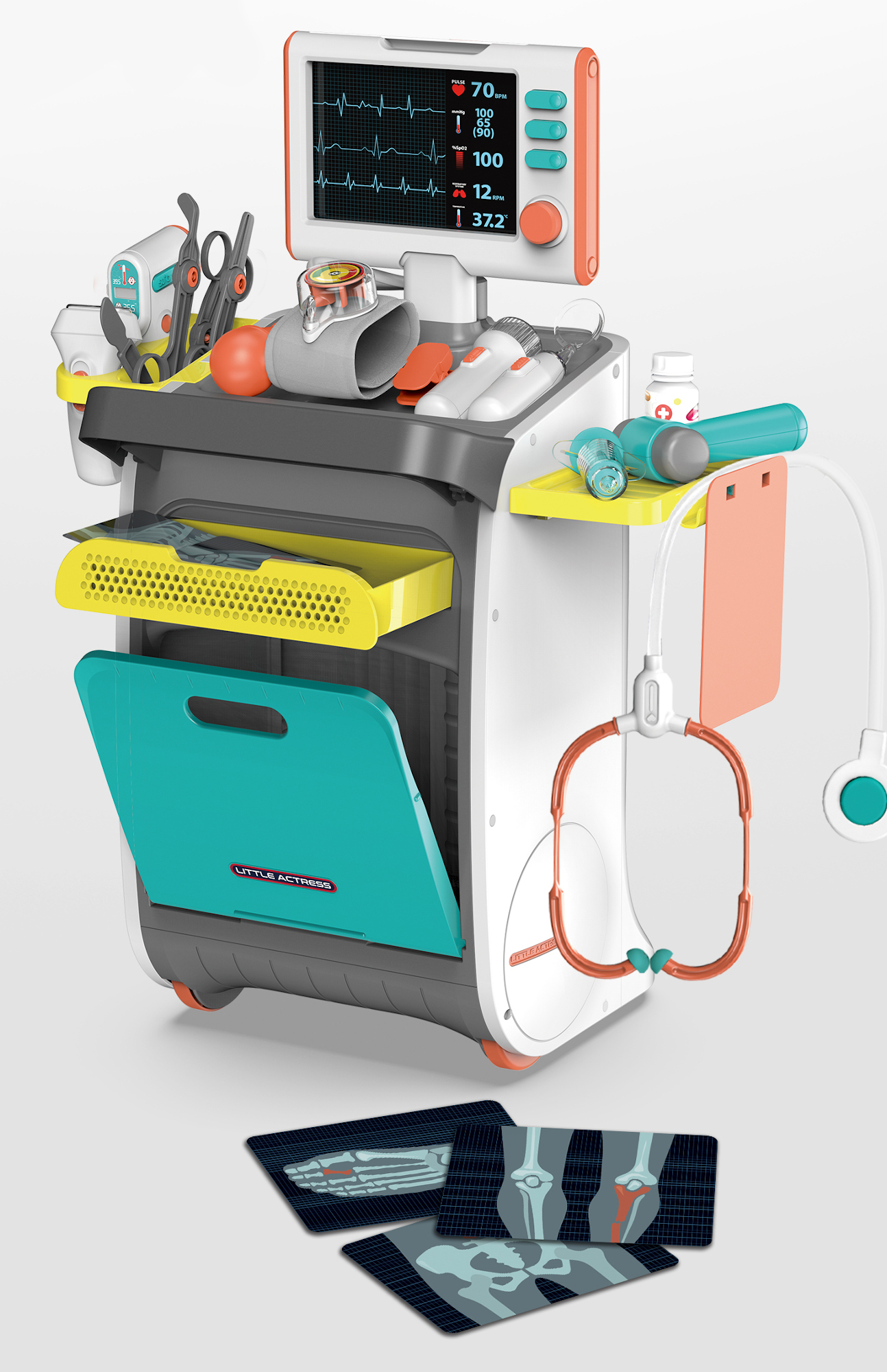 Набір містить все, що найважливіше в роботі лікаря - необхідний медичний візок з монітором, рентген, висувний ростопис і численні відділення та полиці для інших медичних приладів.