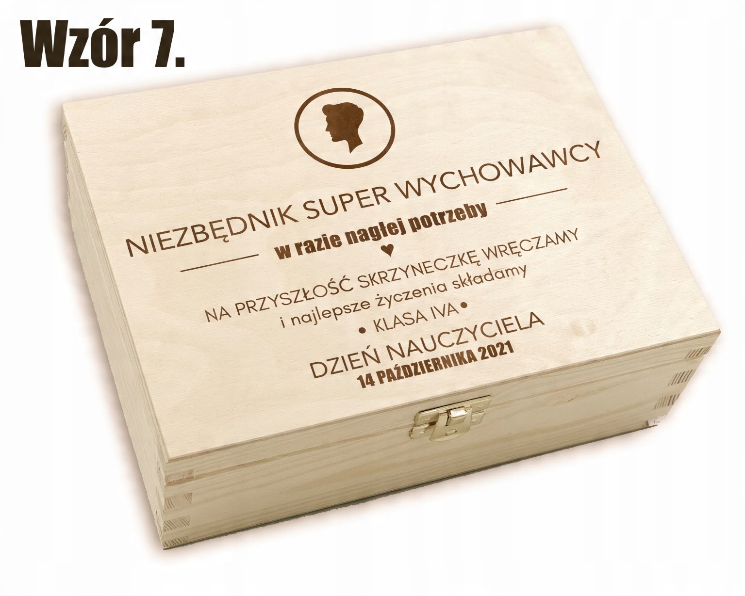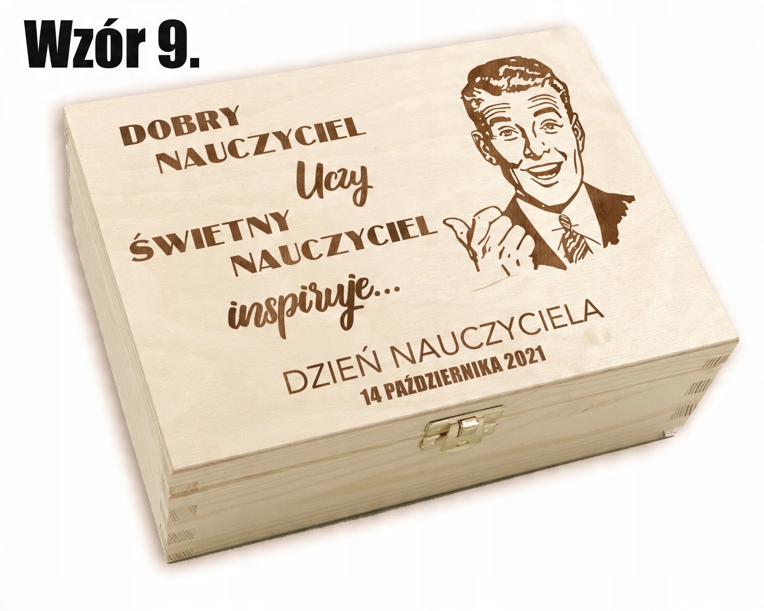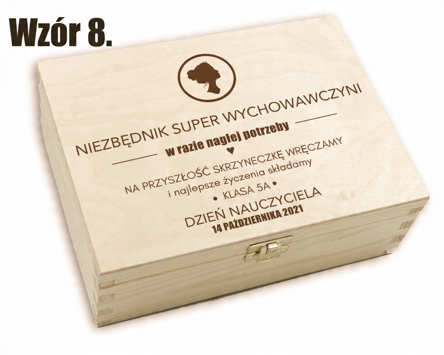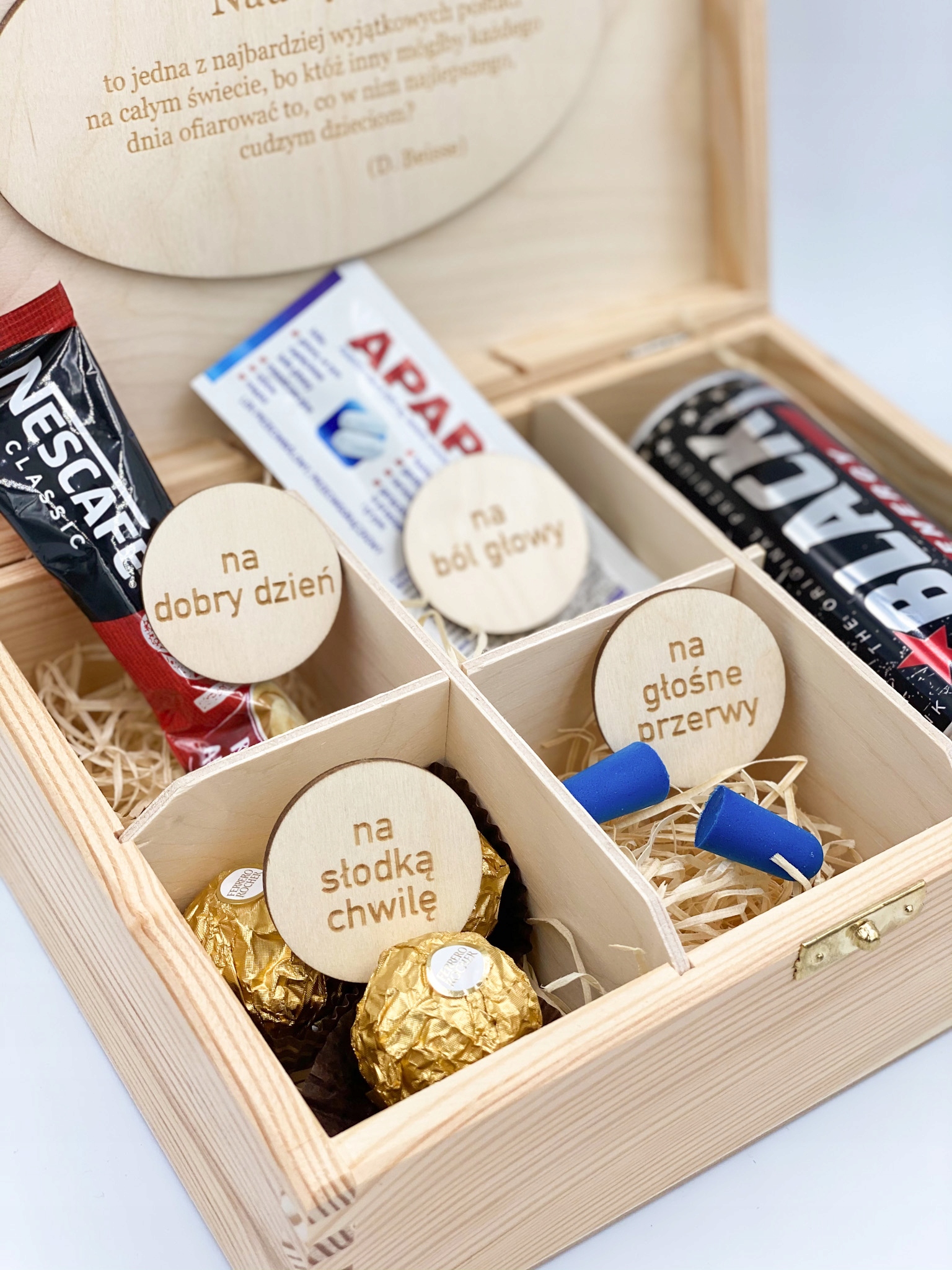 Дерев'яна скринька з присвятою, наповнена деревною ватою. Це ідеальна ідея подарунка до Дня вчителя.
