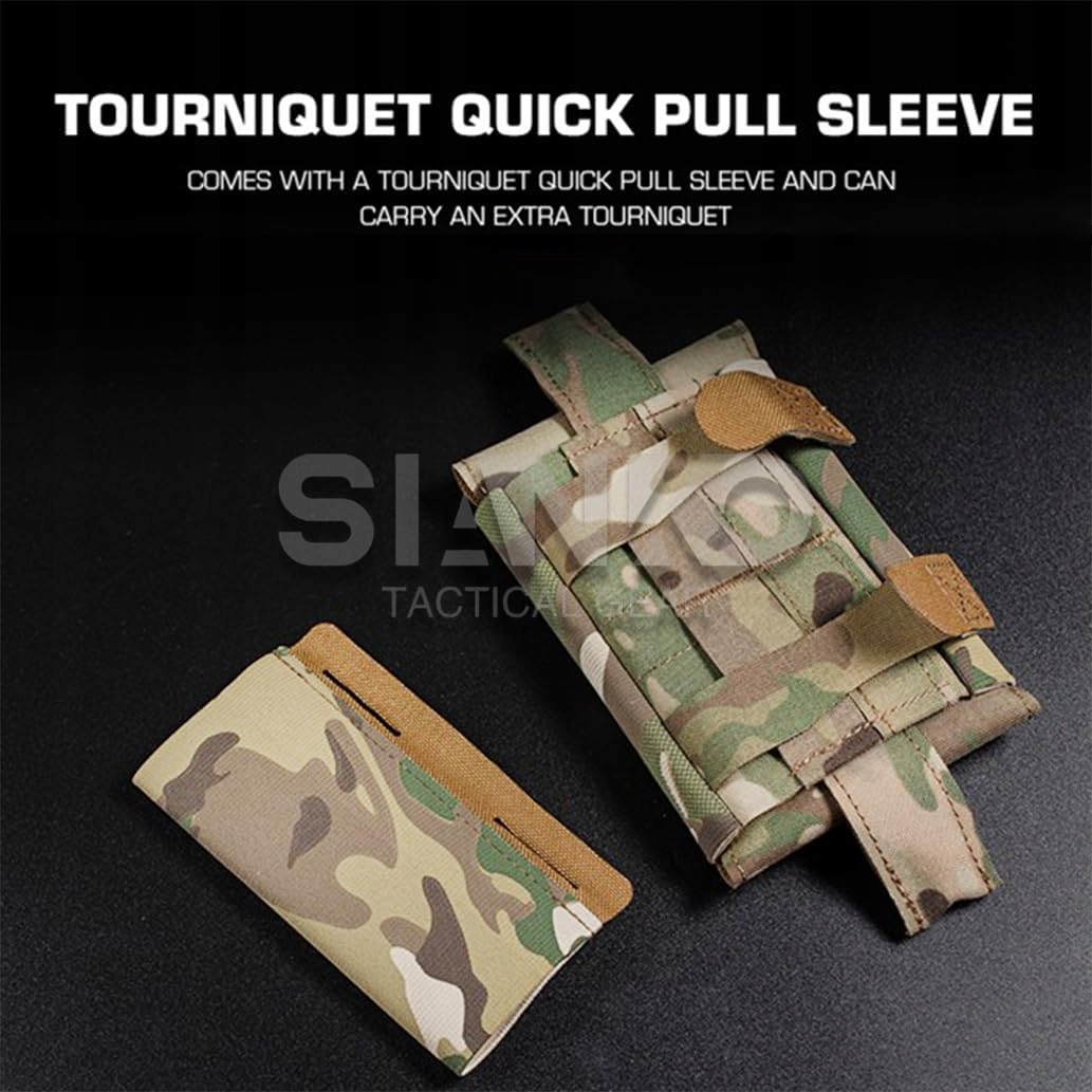 Простір Окремі шнури для вставки та банджі спрощують закріплення запасів і мають достатньо місця для перенесення основних засобів першої допомоги. Quick Release Знімна швидкознімна втулка з вкладкою для миттєвого розгортання важливих матеріалів. MOLLE Laser cut MOLLE webbing легко кріпиться до тактичних жилетів, тактичних рюкзаків, ременів та будь-якого спорядження за допомогою модулів MOLLE. Матеріал: нейлонова тканина 1000D, двошовна, зносостійка, швидковисихаюча функціональна тканина. Легкий 224 см х 99 см вага нетто приблизно 0102 GK 99 г компактний і портативний.