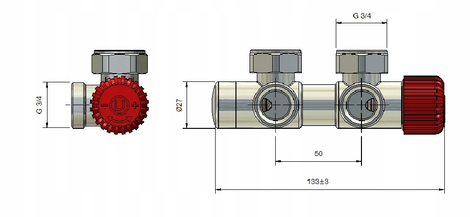 Вентиль TWINS у термостатичній версії був спеціально розроблений для радіаторів з нижнім підключенням і відстанню між патрубками 50 мм. p>