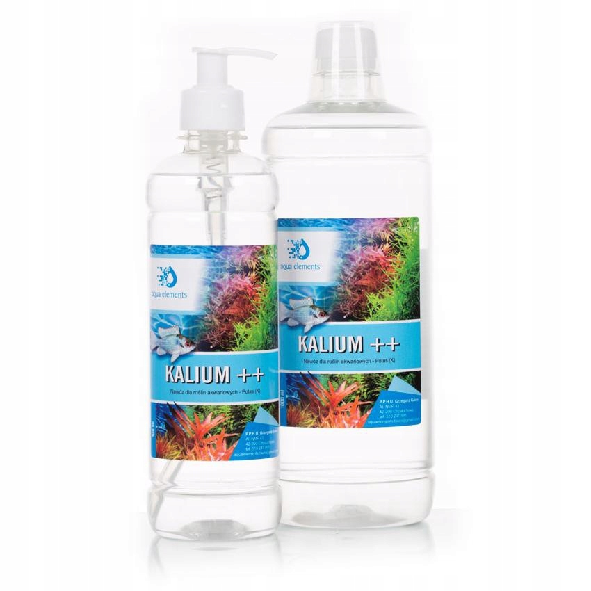 елементи Aqua kalium ++ - є калієм та магнієм у легкозасвоюванні. Продукт містить калій, магній, сірку. Всі інгредієнти вибираються у правильних пропорціях. Регулярне використання продукту стимулює ріст рослин та покращує їх стан. Продукт лише для використання у прісноводних акваріумах. Отримане врегулювання не є недоліком продукту. Захистити від сонячного світла. Продукт корисний для використання протягом 24 місяців від відкриття. Трясти перед використанням.