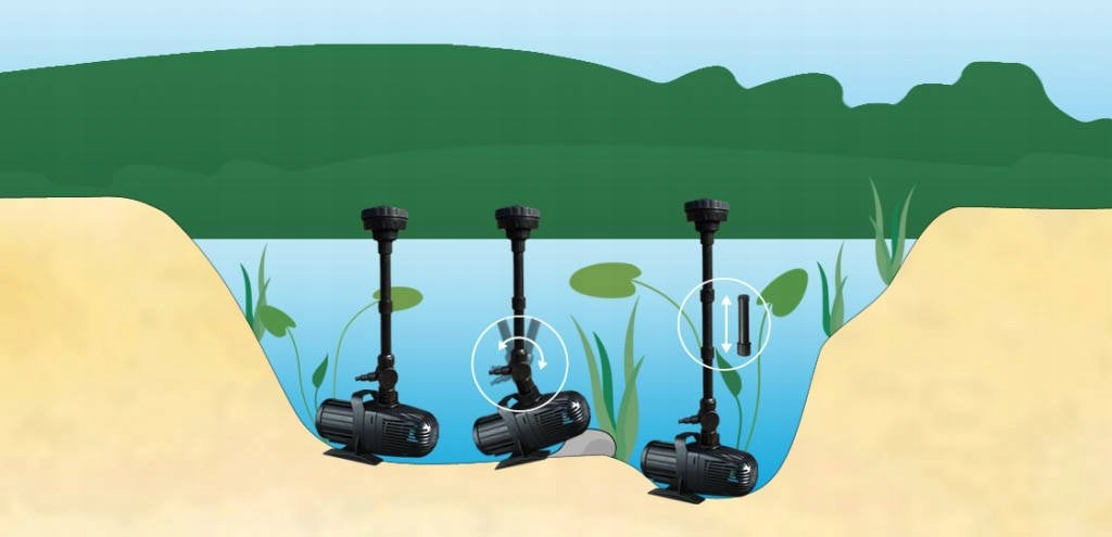 горизонтальне регулювання - Дуже мало наборів, доступних на ринку, мають таке регулювання. Ця інновація полягає у можливості переміщення набору відносно кута осі до 30 градусів. Необхідно, коли дно ставка нерівномірне або природно падає, ставок поглиблюється. Коли ми поставимо набір фонтанів без такого регулювання на кривому дно, то вода фонтану не розпорошить рівномірно. У нашому наборі ця проблема усувається горизонтальним регулюванням. Або якщо, наприклад, насос через деякий час автоматично рухається і не стоїть рівномірно, завдяки цьому коригуванню все, що вам потрібно зробити, - це схопити кінчик фонтану і відрегулювати його, щоб вода обприскувала рівномірно вгору.