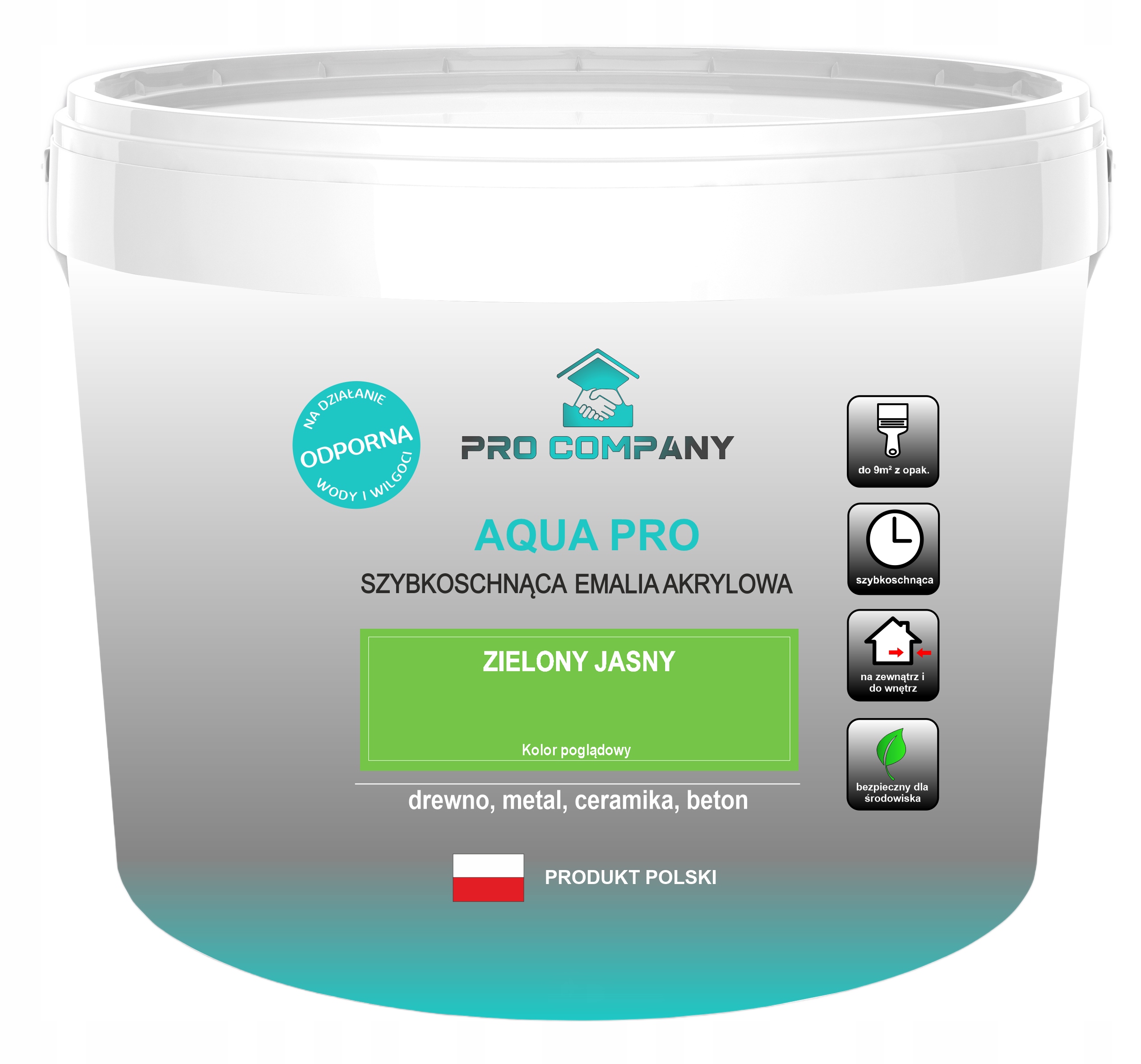 Емальська аква Pro призначена для декоративного та захисного живопису дерев’яних, на основі деревини, усіх типів штукатурки. Його можна використовувати для фарбування картону, малювання полотна, штукатурки та кераміки, а також металевих поверхонь після попереднього простирадла з антикорозійною основою. Для використання в приміщенні та на відкритому повітрі.