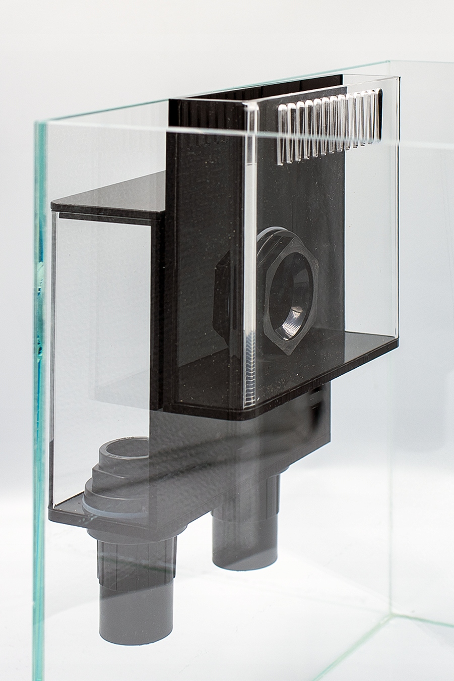 Цей інноваційний дизайн коробки створює дуже просту та безпечну систему переливу, яка є чудовою альтернативою стандартним димоходам. Завдяки нашому OF300 ви можете легко модифікувати свій акваріум, щоб адаптувати його для роботи з відстійником, просто зробіть отвір у склі акваріума за допомогою діркової пилки, що входить до комплекту, дотримуючись точних інструкцій