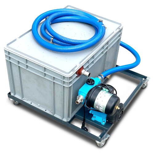 Це ємність об’ємом 50 л з металевим лабіринтовим фільтром, який уповільнює та затримує бруд, масло та залишки абразиву на дні ємності, очищає воду від домішок і за допомогою насоса повертає її назад у камеру для подальшої роботи