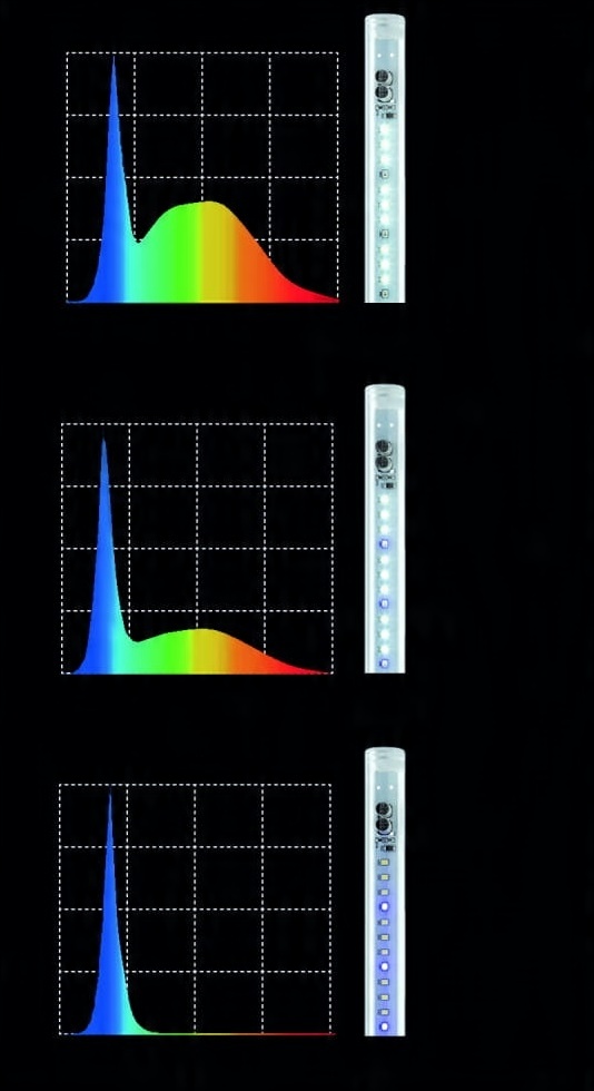 - змішане світло 30 білих діодів + 7 синіх діодів