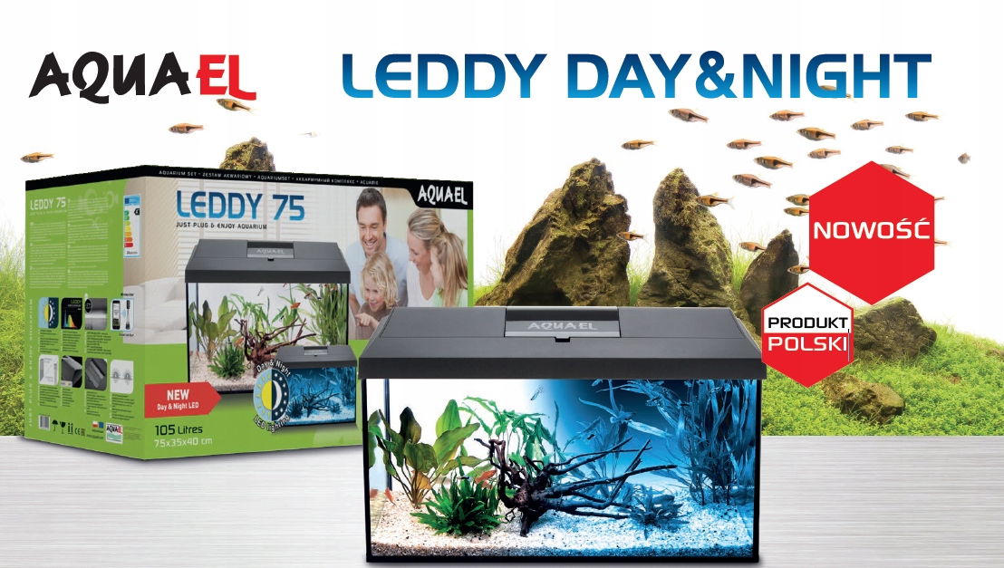 Завдяки новому освітленню DAY&NIGHT ви можете милуватися своїм акваріумом і вночі! Нові акваріумні набори Leddy включають кришку з новітнім світлодіодним освітленням, яке об’єднує денне та нічне освітлення.