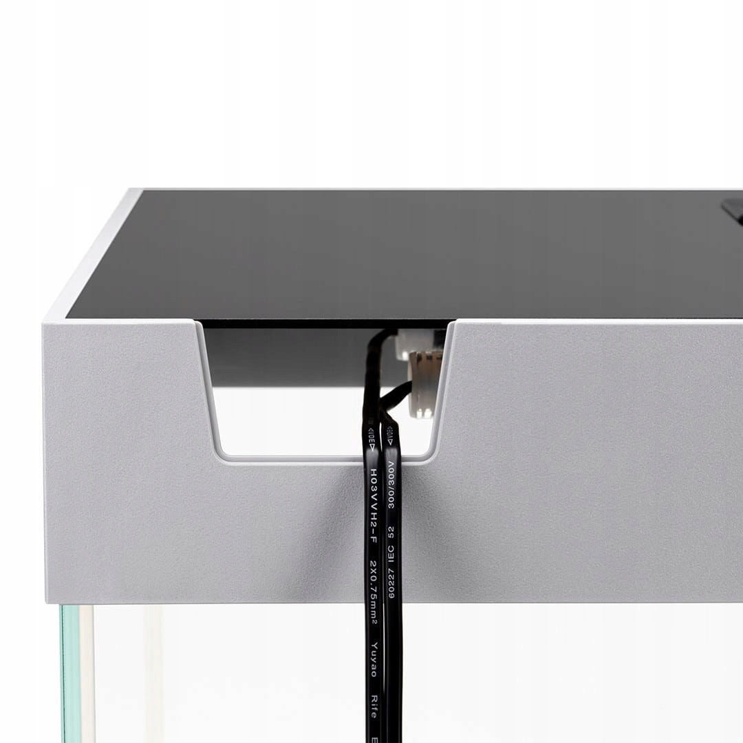 Рамка також ідеально поєднується з елегантною кришкою, оснащеною запатентованою системою Smart Open. Ця система дозволяє легко відкривати і зупиняти кришку в потрібному положенні. У кришці ми розмістили закривається вікно, через яке зручно годувати рибу. Технічні отвори на задній стінці акваріума призначені для зовнішніх шлангів фільтра. Ви також проведете туди кабелі для живлення електричних пристроїв акваріума. Більше ніяких непривабливих звисаючих кабелів!