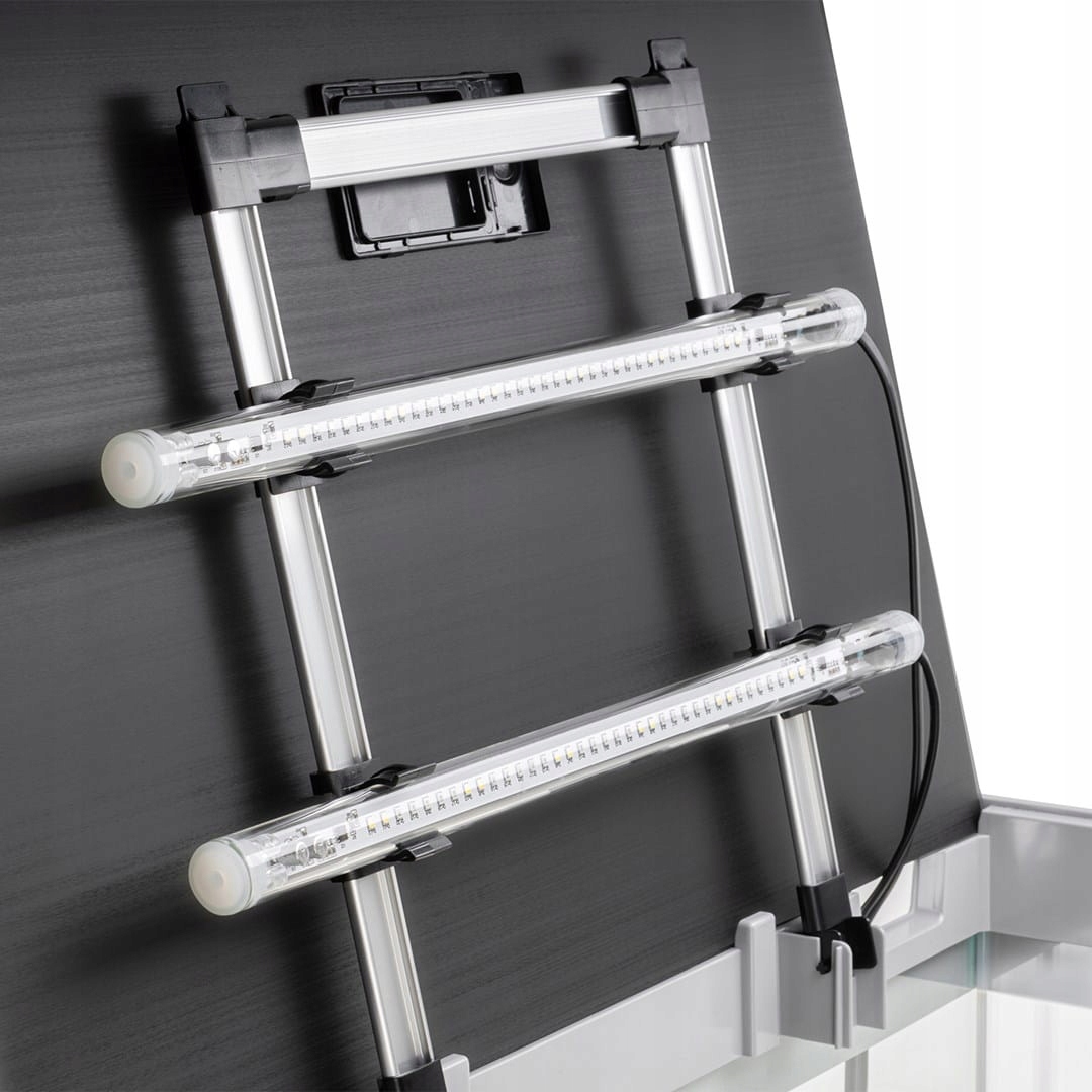 Просто під кришкою, всередині резервуара, є дві рейки зі світлодіодним підсвічуванням Aquael Leddy Tube Sunny Day & Night 2.0. Модулі мають потужність 10 Вт, що ідеально підходить для розміру акваріума.