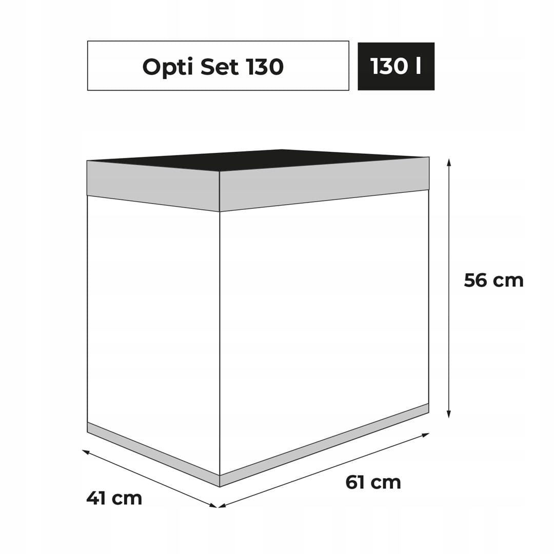 Opti Set 130 створений для любителів цікавих рішень. Спереду танк має квадратну форму, але за верхньою рамою ховаються додаткові сантиметри. Акваріум вище стандарту. Це означає, що при розмірах основи 60x40 акваріум має місткість цілих 130 літрів! Це дає більше простору для просторових підводних композицій.