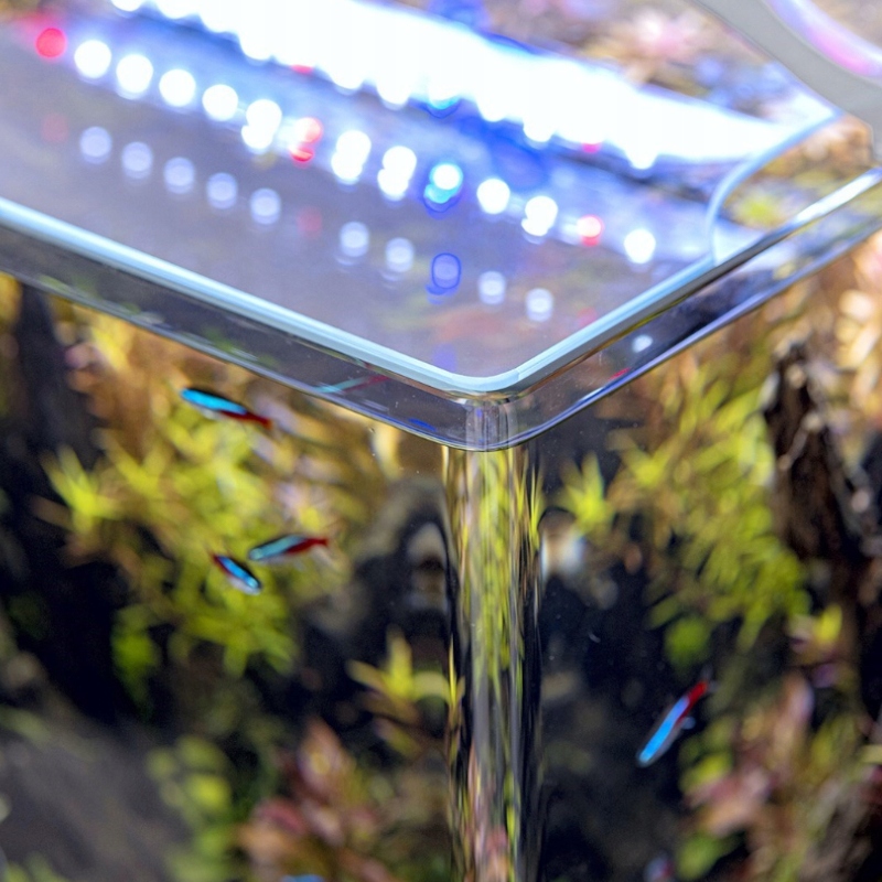 Завдяки такому склу ми мінімізуємо втечу риб, креветок і равликів з акваріума, а також підтримуємо рівномірну температуру на поверхні, що дуже важливо, наприклад, для бійцівських риб, щоб зменшити ризик застудитися в лабіринті.