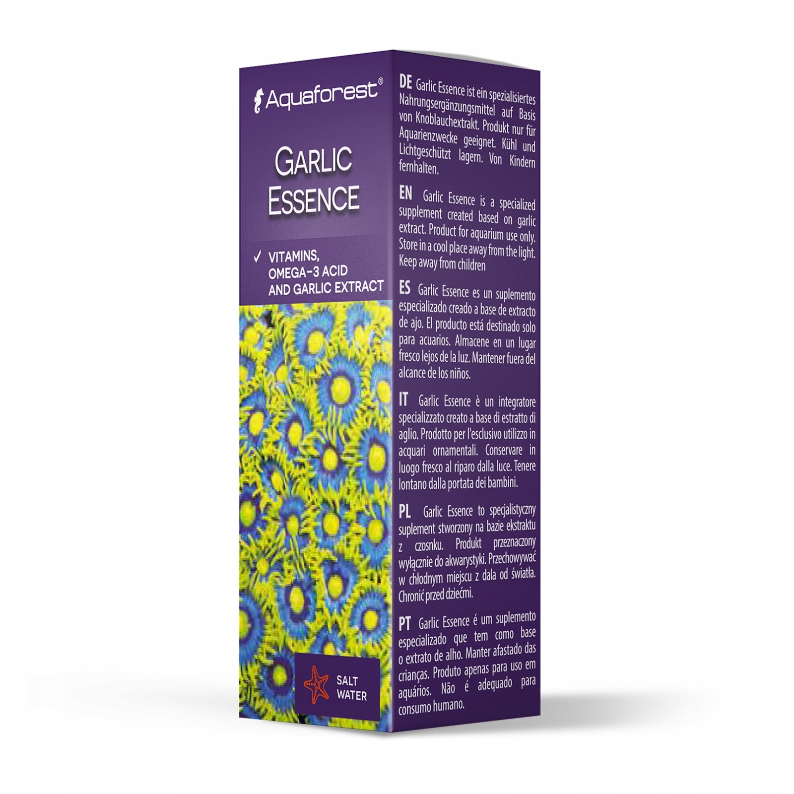 Продукт додатково збагачений кислотами Омега-3. Користь від їх присутності в раціоні неоціненна. Вони позитивно впливають, в тому числі, на нервову систему і роботу серця. Тому вони забезпечують природну підтримку здоров’я та життєвих сил. Часникова есенція також корисна під час лікування та в карантинних акваріумах.