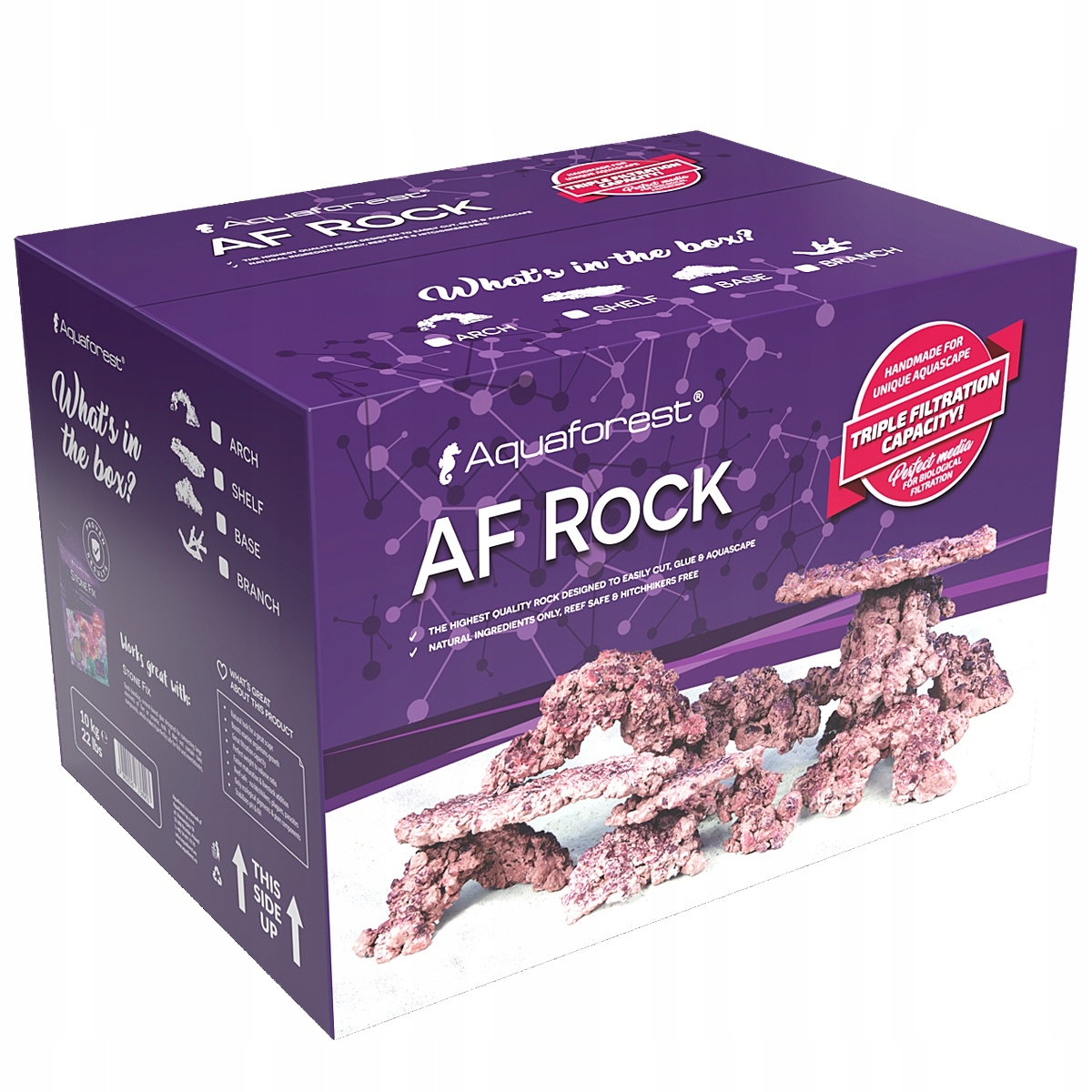Виготовлено з повністю натуральних інгредієнтів найвищої якості, призначених для морських акваріумів. Висока естетика та ручна робота роблять AF Rock схожим на камінь, який природно зустрічається в коралових рифах. Завдяки своїй високій пористості він сприяє розселенню бактерій і чудово служить фільтруючим середовищем. На відміну від каменів, які зазвичай зустрічаються на ринку, AF Rock має, перш за все, здатність забезпечувати ефективну фільтрацію.