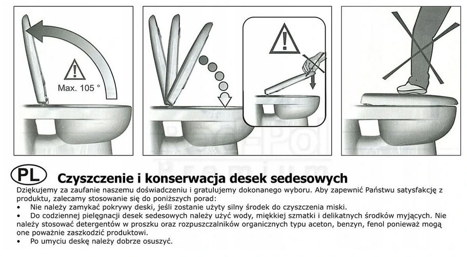 - Комфорт - амортизатори, встановлені на обох петлях дошки, дозволяють швидко звільнити за допомогою засувки та спричинити повільне опускання як кришка, так і сидіння.
