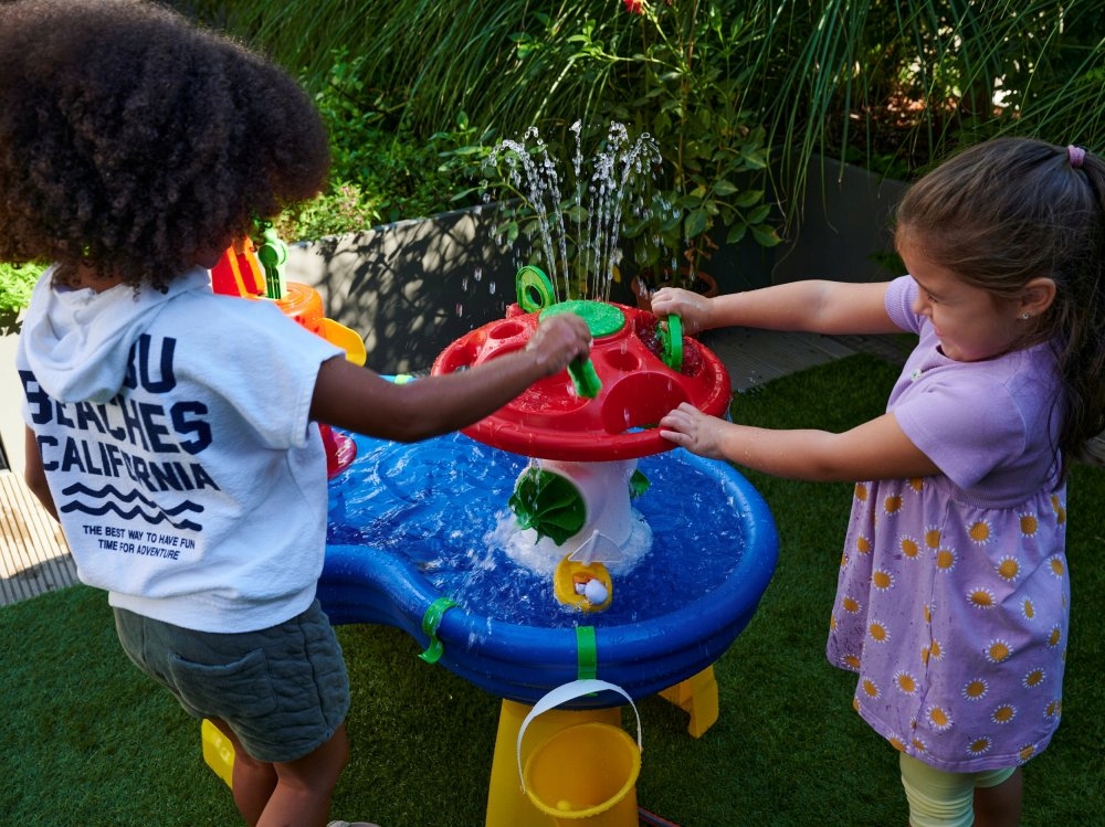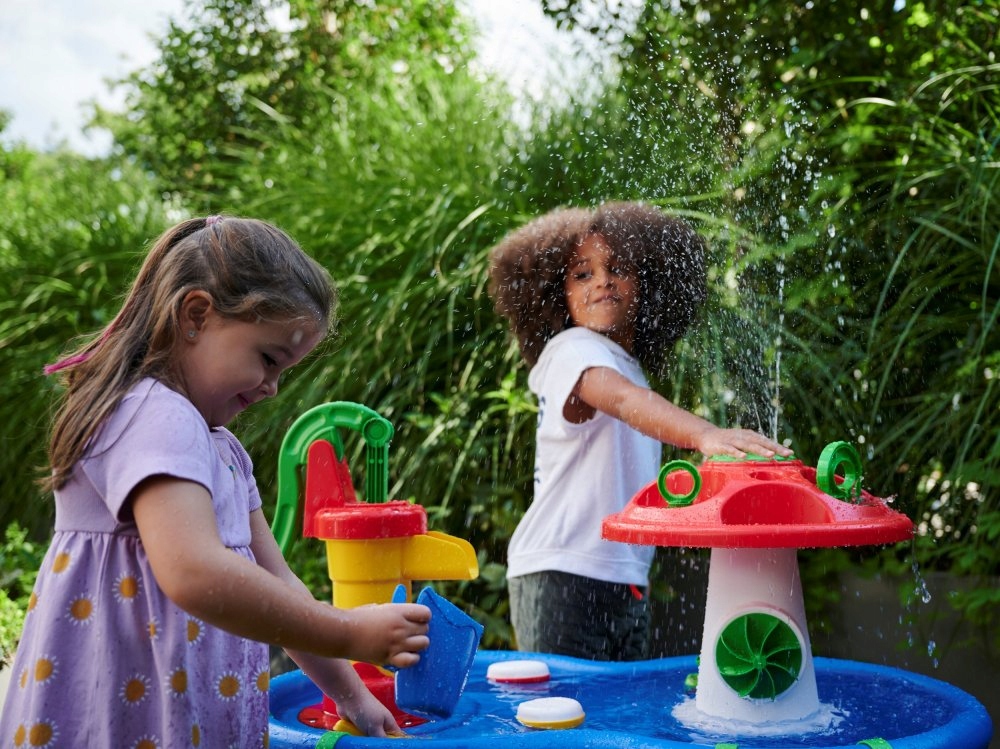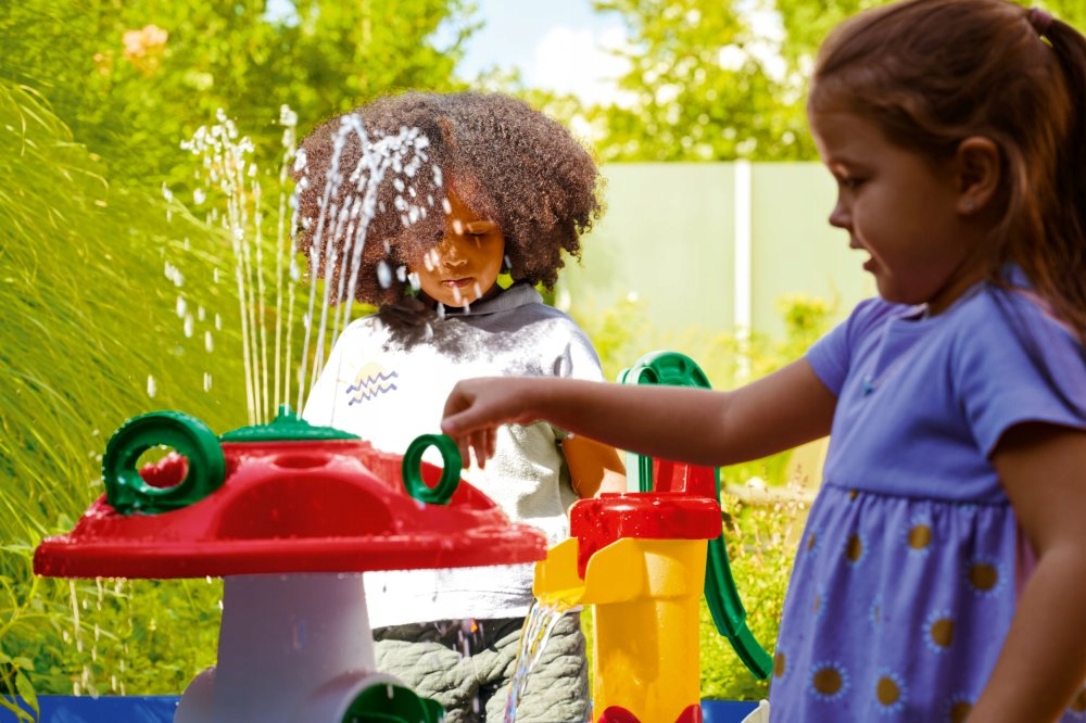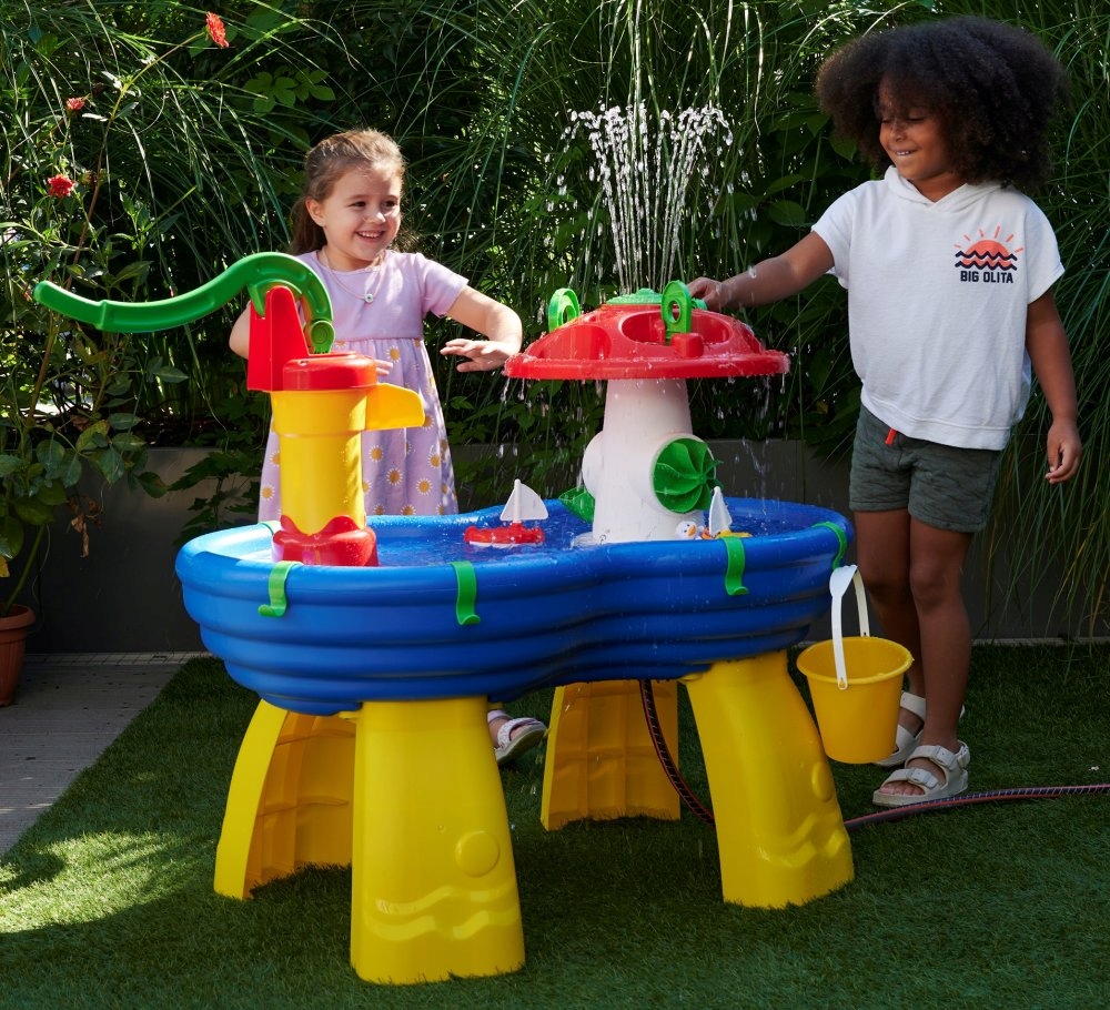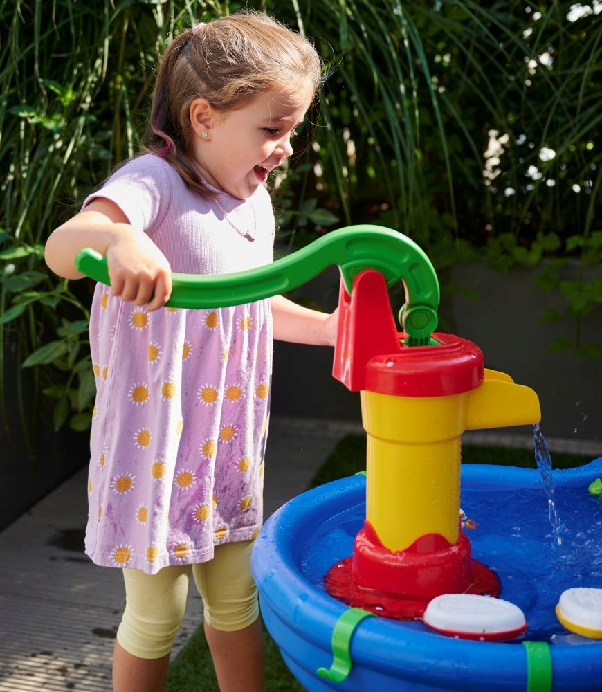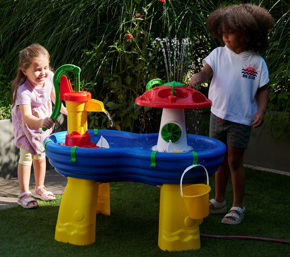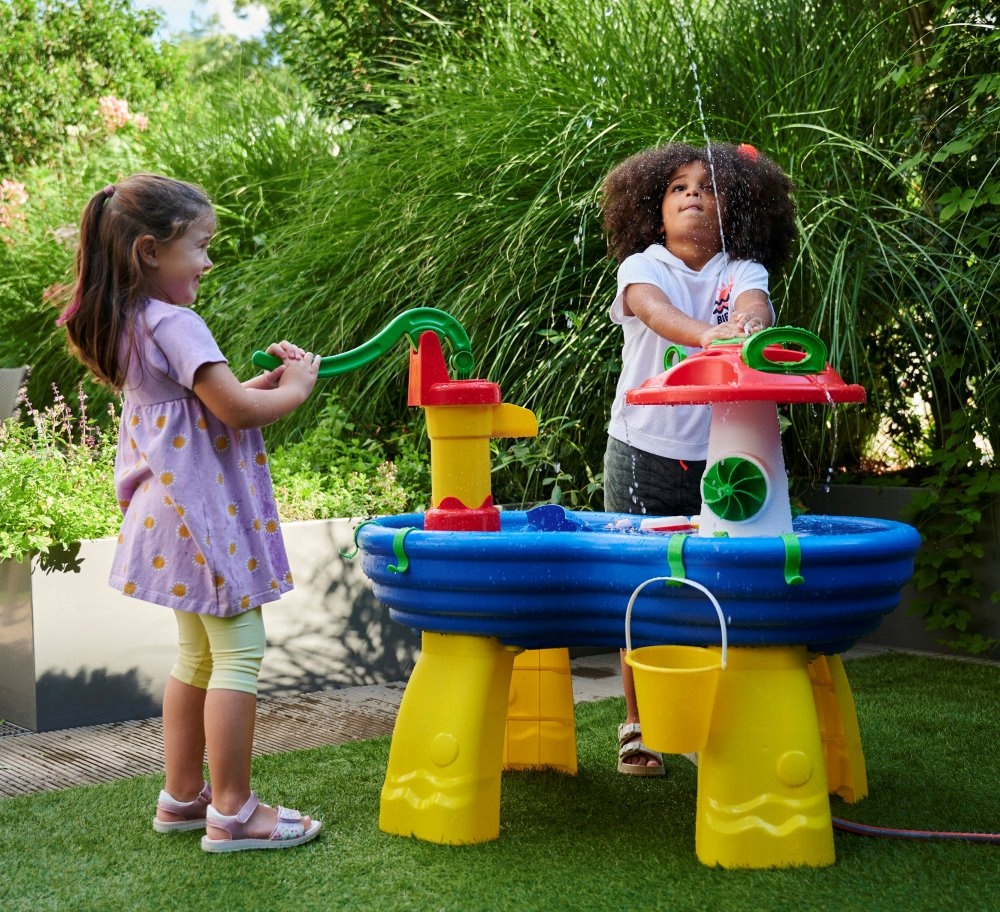 Стіл для водних ігор забезпечує бажану прохолоду в саду в жаркий час. літні дні. Він дозволяє маленьким дослідникам віком від трьох до семи років досліджувати можливості освіжаючих ігор.