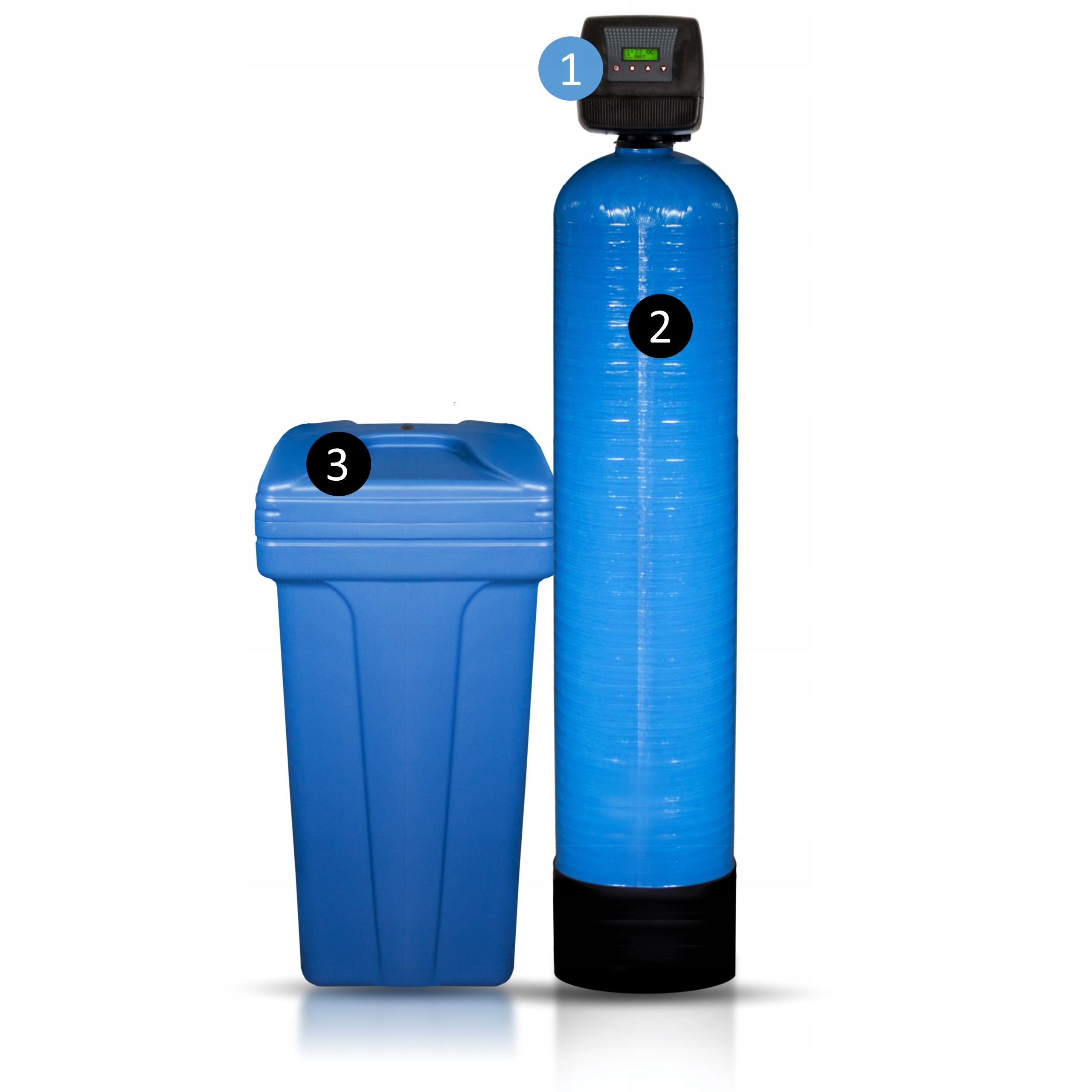 2-елементна багатофункціональна станція від Wodaro®, призначена для захисту цілих водних установок та всіх пристроїв, підключених до них, в односемейних будинках, багатосімейних будинках, громадських будівлях, таких як офіси, ресторани, банки, лайні, промивачі. Одночасно пом'якшуючи та прасує воду. видаляє солі кальцію та магнію з води, тобто сполуки, які викликають осад, особливо під впливом температури, вапняку вапняного осаду, відомого як камінь з кальєфі.