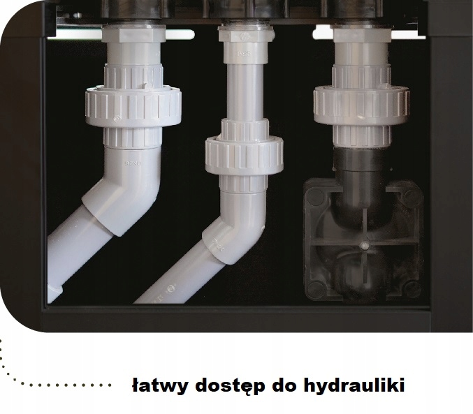 Шафи L'Aquarium 570 розроблено відповідно до найвищих стандартів. Він має елегантний сучасний дизайн із глянцевим чорним покриттям. Великим плюсом є те, що він повністю водонепроникний, як всередині (покритий синтетичним матеріалом), так і зовні. Ніжки регулюються для оптимального вирівнювання.